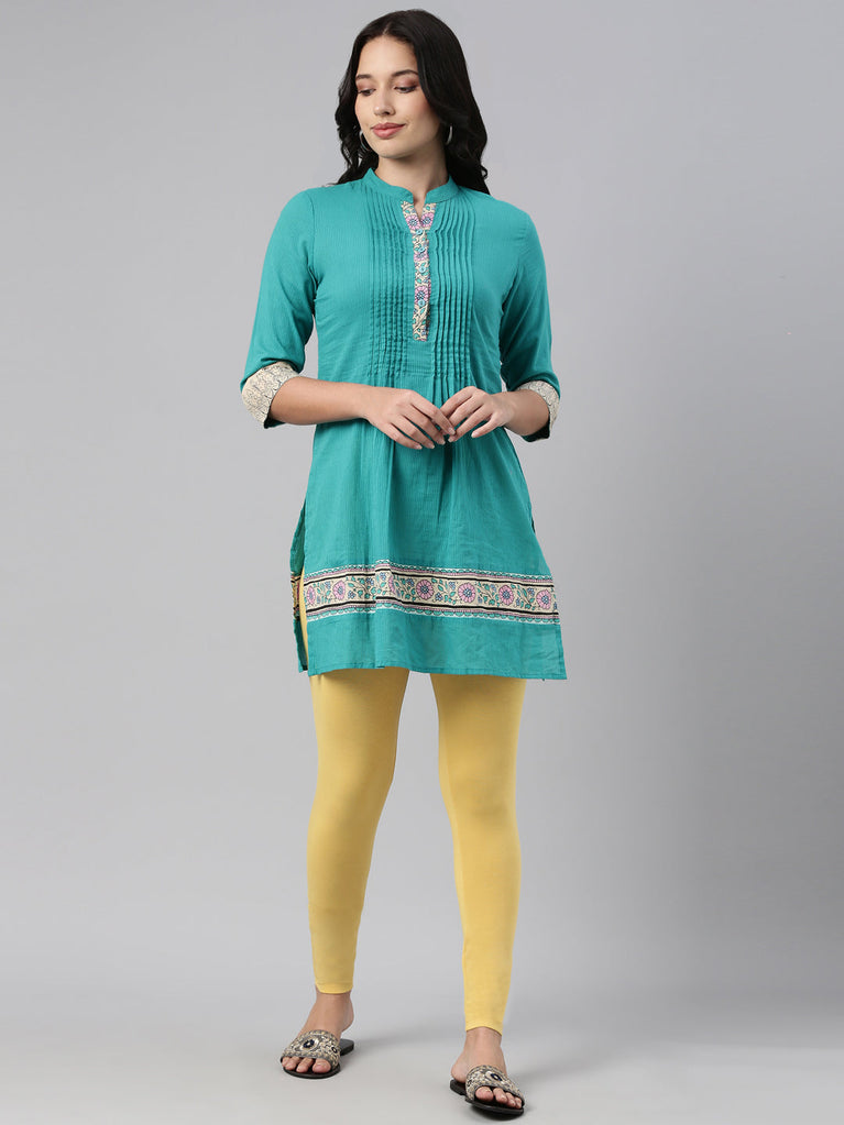 Complete any look, be it traditional or western with these Solid Bottle Green Leggings. Made from cotton & elastane, it has a elasticised waistband & has a slim fit.