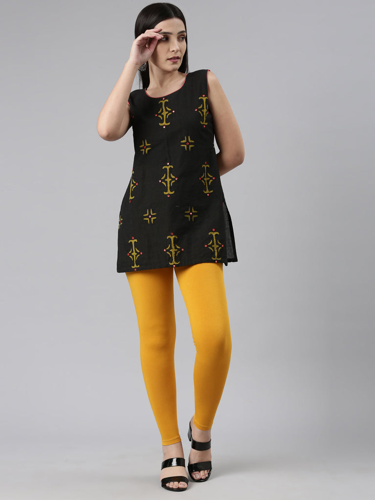 Complete any look, be it traditional or western with these Solid Bright Mustard Leggings. Made from cotton & elastane, it has a elasticised waistband & has a slim fit.