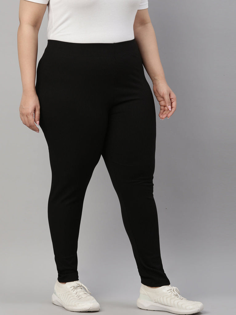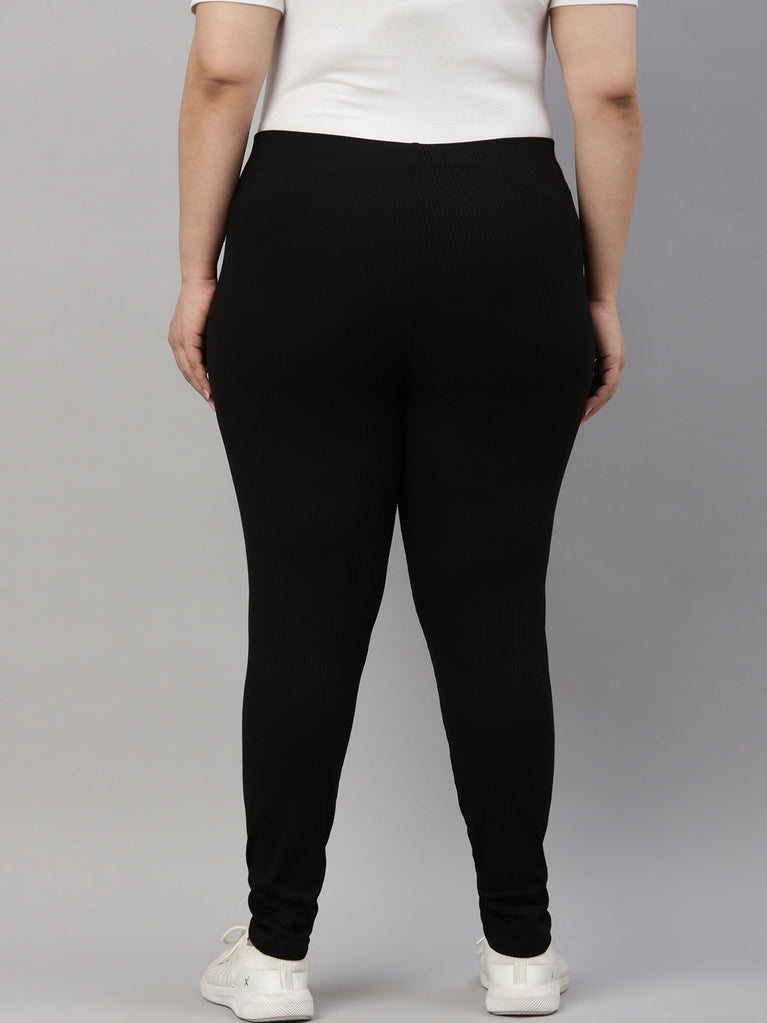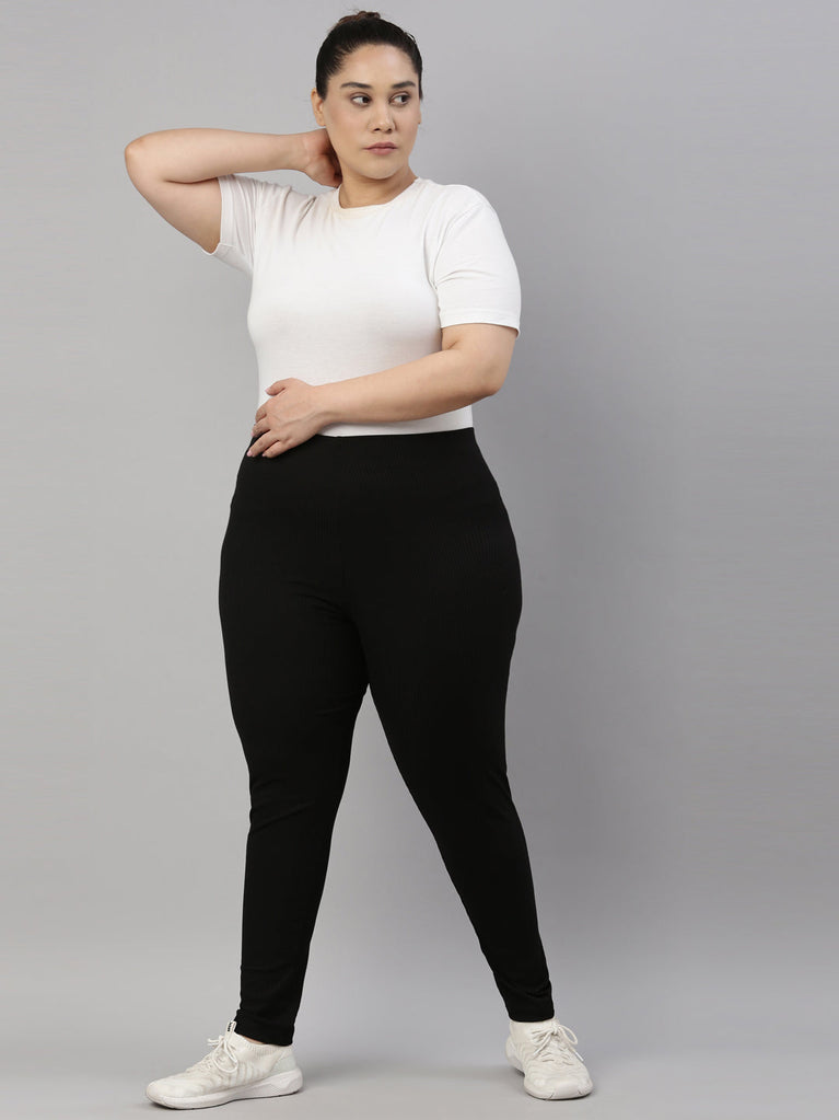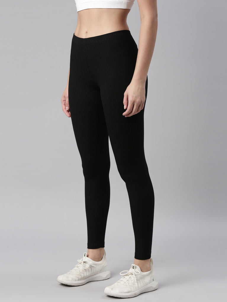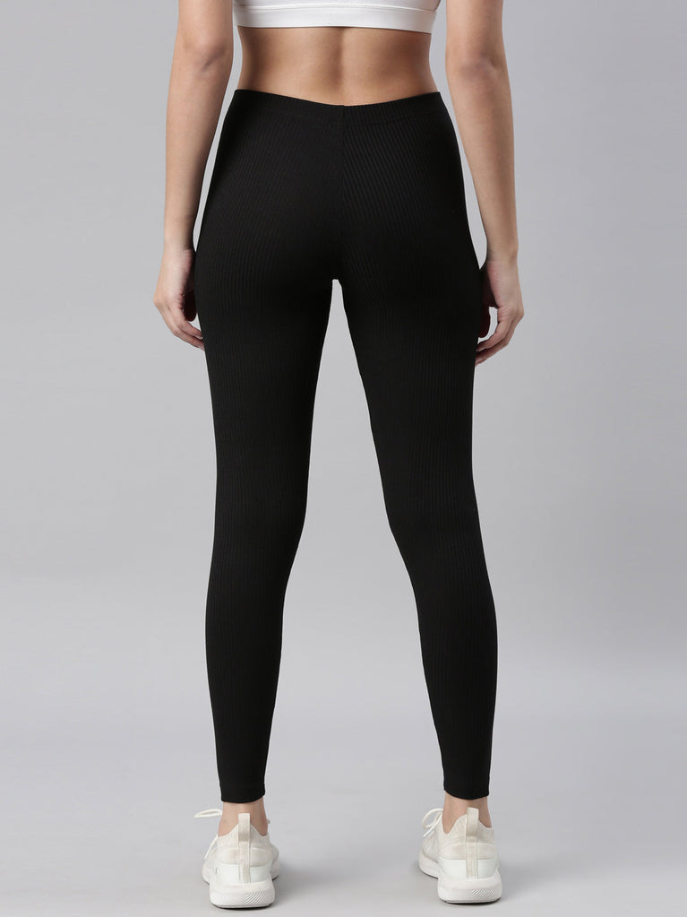 Go the ethnic way with our Solid Black Ribbed Leggings. Made from Rayon & Spandex it has a elasticised waistband, slim fit & is of ankle length