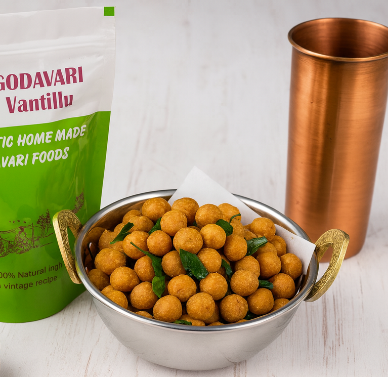 Experience the authentic taste of tradition with our Special Eetha Bellam Cashew Chikki, crafted using premium whole cashews and pure Eetha Bellam (Palm Jaggery). Every bite delivers a perfect balance of rich nutty crunch and natural caramel sweetness. Made using age-old Godavari recipes, this chikki is handcrafted in small batches to ensure unmatched freshness, flavor, and aroma — without any artificial preservatives. Why It’s Special 🌿 Made with natural Eetha Bellam – rich in minerals & packed with earthy sweetness🥜 Loaded with whole cashews – for an indulgent crunch🔥 Traditional slow-cooked method – enhances taste & texture💛 No refined sugar, no chemicals🌾 Perfect festive gift or everyday healthy snack Taste Profile A delightful combination of soft caramel jaggery glaze coating crunchy cashews, giving you a deeply satisfying, melt-in-mouth traditional treat. Perfect For Gifting during festivals Healthy sweet cravings Kids’ snack box Tea-time indulgence Sharing with friends & family Bring home the nostalgic flavors of Andhra — pure, traditional, and irresistibly delicious. Enjoy the heritage of Godavari in every bite!