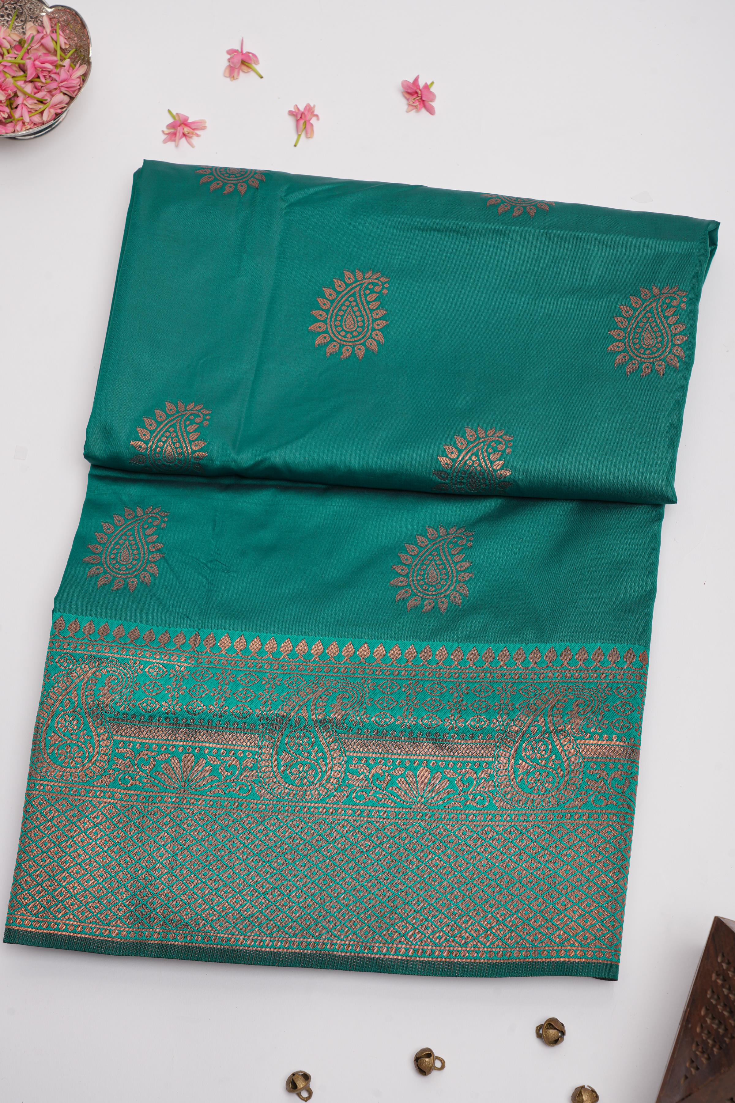 Latest LIGHT GREEN BUTTIS SILK BLEND Saree with SELF ZARI border. This saree comes with PLAIN WITH BORDER SILK BLEND blouse.