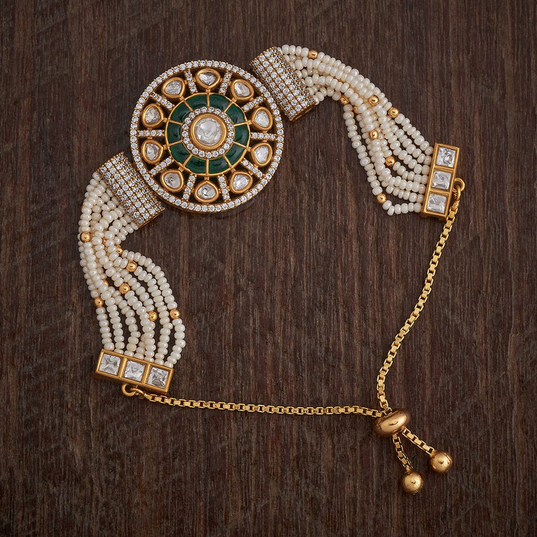Kushal's Fashion Jewellery Bridesmaid Kundan BangleBangles are an excellent way to romp up your ethnic fashion game. If you are one of those devoted fashionistas who fancy wearing bangles, you will love Kundan bangles from the house of Kushal's . These bangles are embedded with clear-cut Kundan stones to elevate the beauty. The copper alloy base will extend its charm by being lightweight and comfortable.
