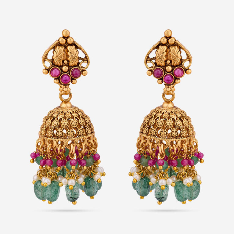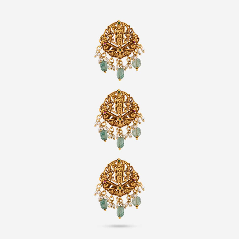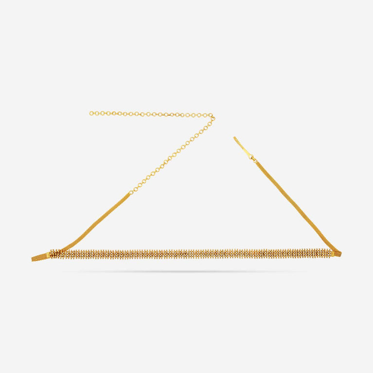 Beaded Design Antique ChainUpgrade your look with this antique mala, a short necklace featuring green or ruby-green synthetic stones set in a gold polish. Perfectly designed to pair with Indo-Western outfits, this elegant piece adds a touch of sophistication and charm, making it an ideal accessory for both casual and special occasions.