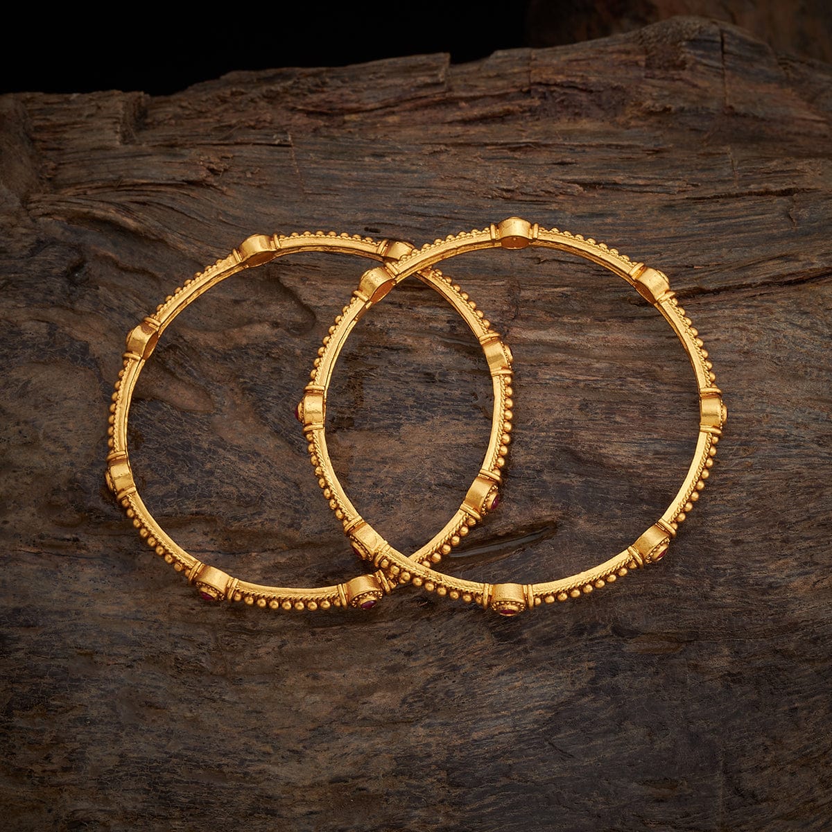 Looking for the perfect accessory to make a statement? Look no further than our sensational antique bangle. Crafted from a lightweight copper alloy base metal and featuring a stunning ruby synthetic stone, this bangle is a masterpiece. Its stylish and alluring gold polished finish and intricate design will effortlessly upgrade your look.