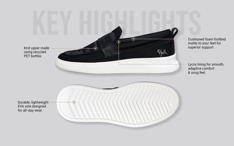 A modern take on the classic penny loafer, these backless mules blend effortless style with all-day comfort. Crafted with breathable knit made from recycled PET bottles and a cushioned footbed, they’re easy to slip on and impossible to take off. The lightweight yet grippy TPR outsole keeps you steady indoors and out, while their sustainable design lets you step lighter on the planet—without sacrificing style.