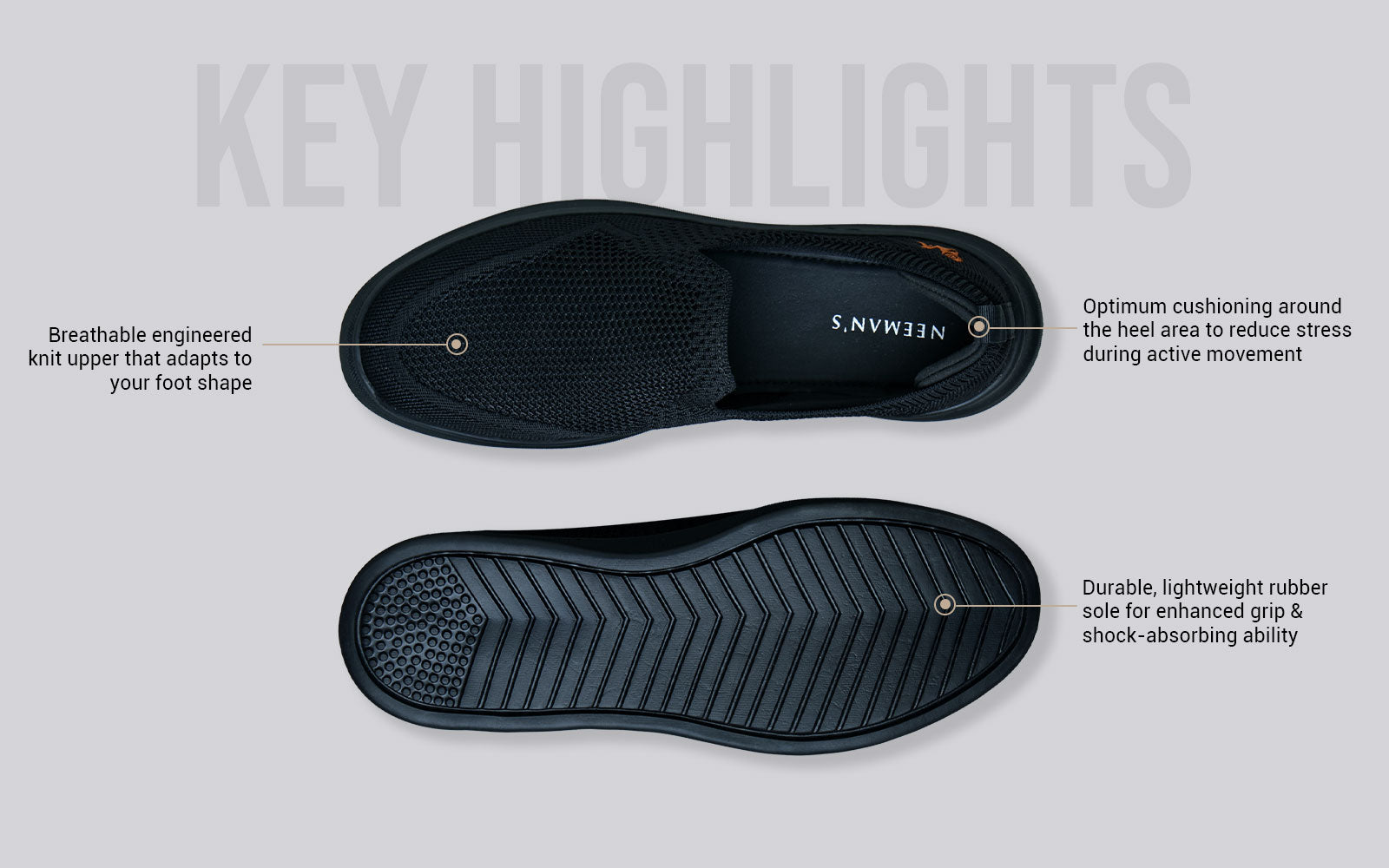 Elevate Slip Ons is designed to be that ideal everyday footwear in your wardrobe. A breathable, engineered knit upper that adapts to your foot shape, and the signature Neeman’s comfort, this pair does its job whether you are in college, office, or at the airport waiting to board. This is the kind of style you don’t overthink and just keep reaching for.