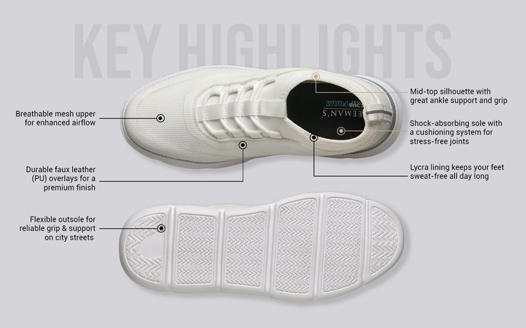 When comfort and style finally stop arguing, you get the Fuse Knit Sneakers. A breathable knit up front, a supportive silicone heel counter at the back, and a cushy, lightweight sole underfoot come together in a pair that’s light on your feet, heavier on style, and built to keep up with you every day.