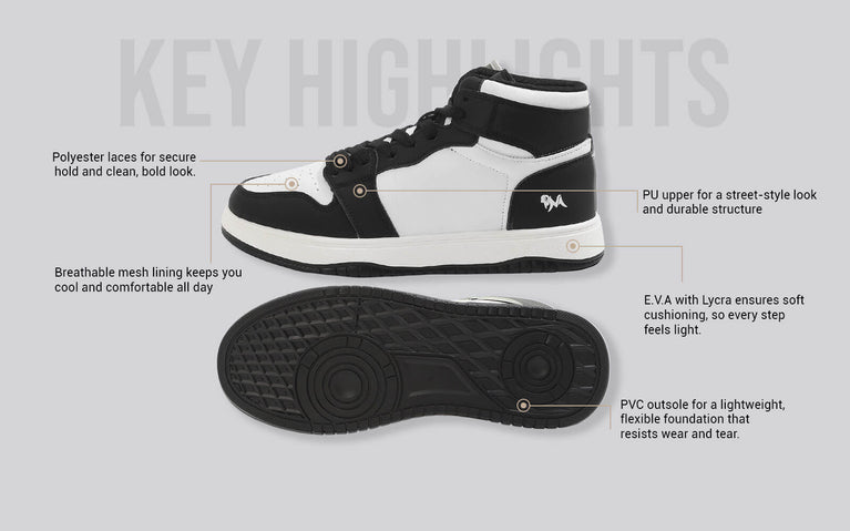 Turn up the volume on your street style with The Character High-Tops! These kicks combine a classic high-top silhouette with a bold, hip-hop edge, giving you the perfect balance of comfort and statement-making style. From casual streetwear to your weekend adventures, these shoes are built to move with you, offering support and swagger with every step.
