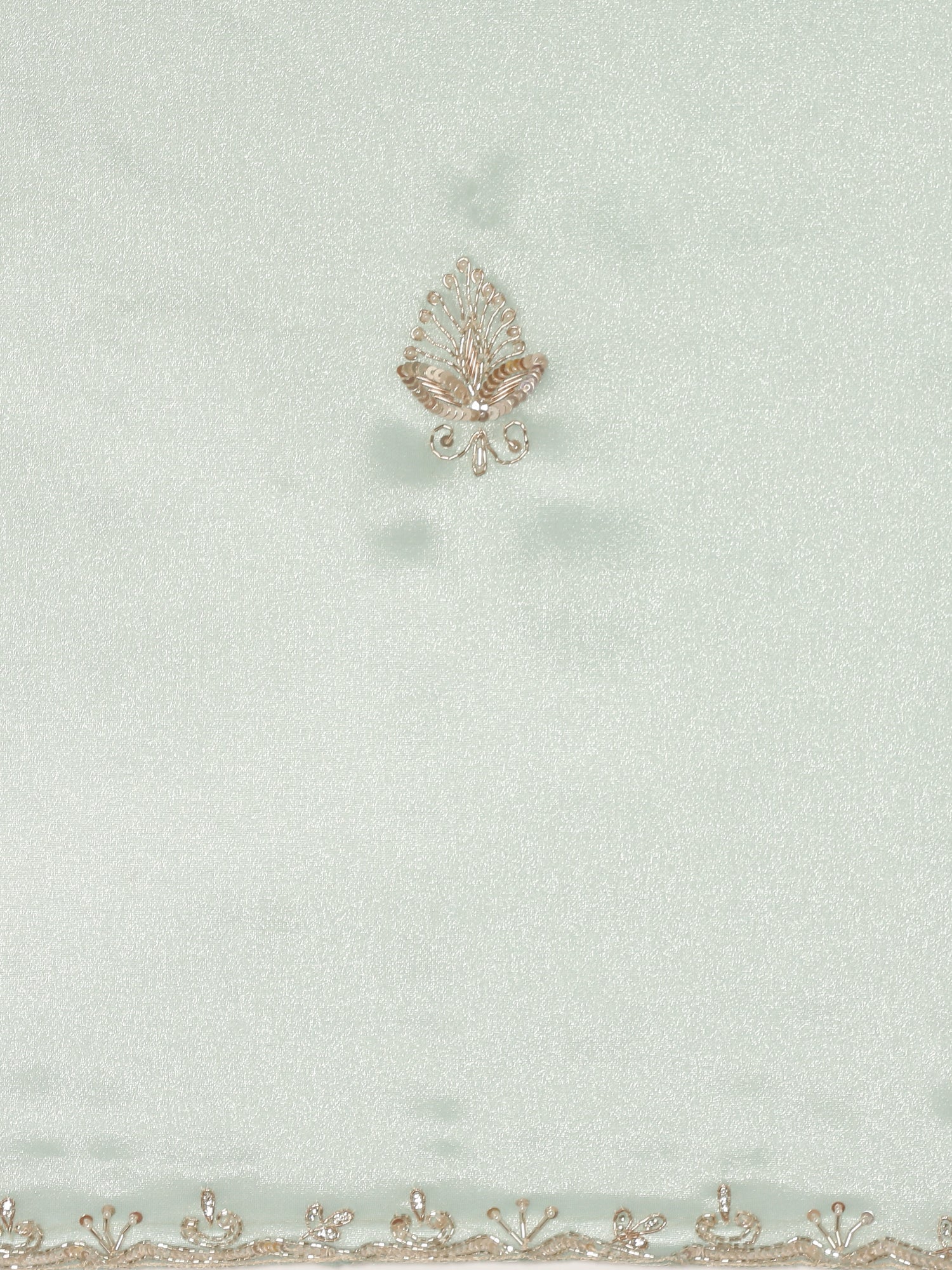 Elevate your elegance with this Blue Tissue Saree, beautifully adorned with subtle stone work that adds a refined shimmer. Paired with a meticulously crafted readymade blouse, it offers a perfect blend of tradition and convenience. Ideal for special occasions, this saree ensures a graceful drape and a sophisticated look that commands attention effortlessly.