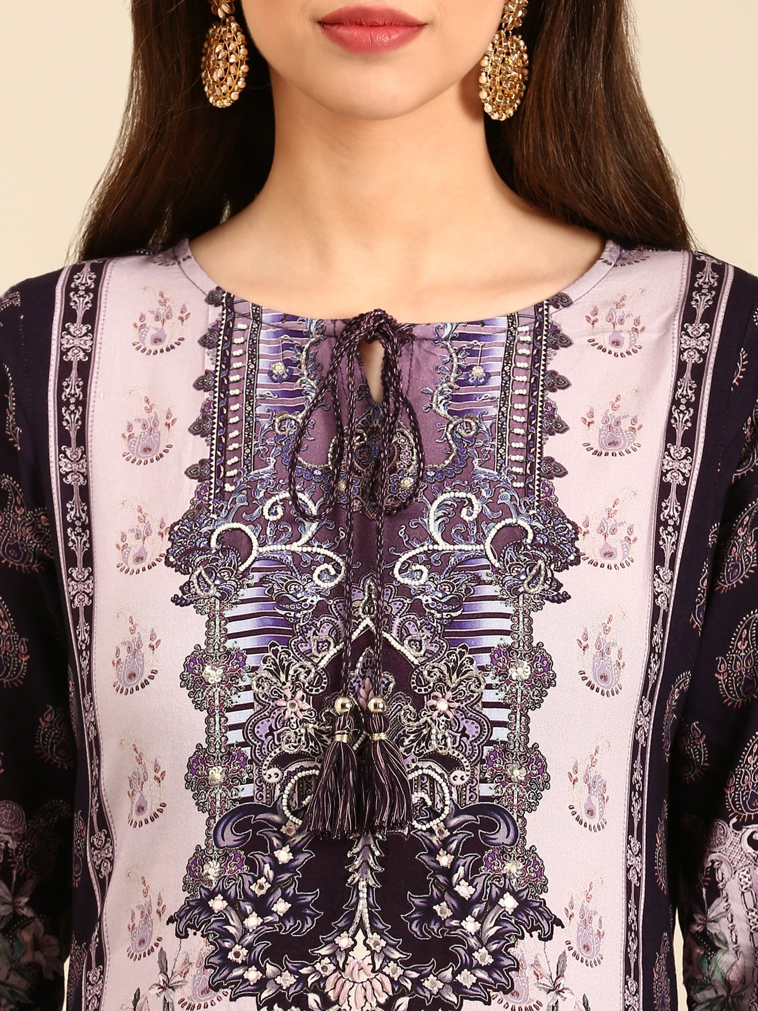 Experience elegance and comfort with this Deep Purple three-piece suit crafted from soft rayon fabric. Featuring a stylish printed design, it offers a perfect blend of sophistication and breathability, making it ideal for both formal occasions and festive events. Elevate your wardrobe with its rich color and lightweight feel that ensures all-day comfort and a polished look.