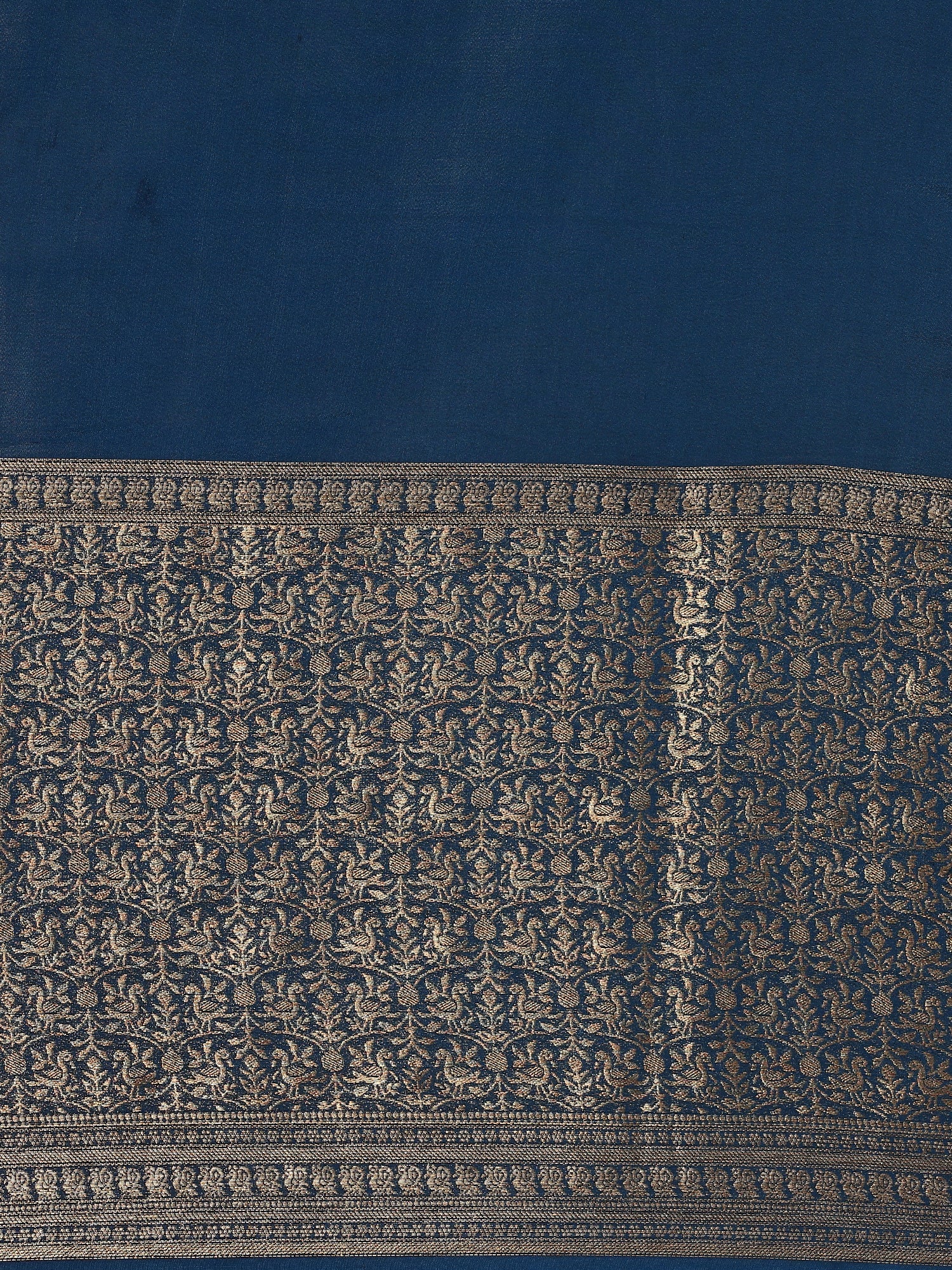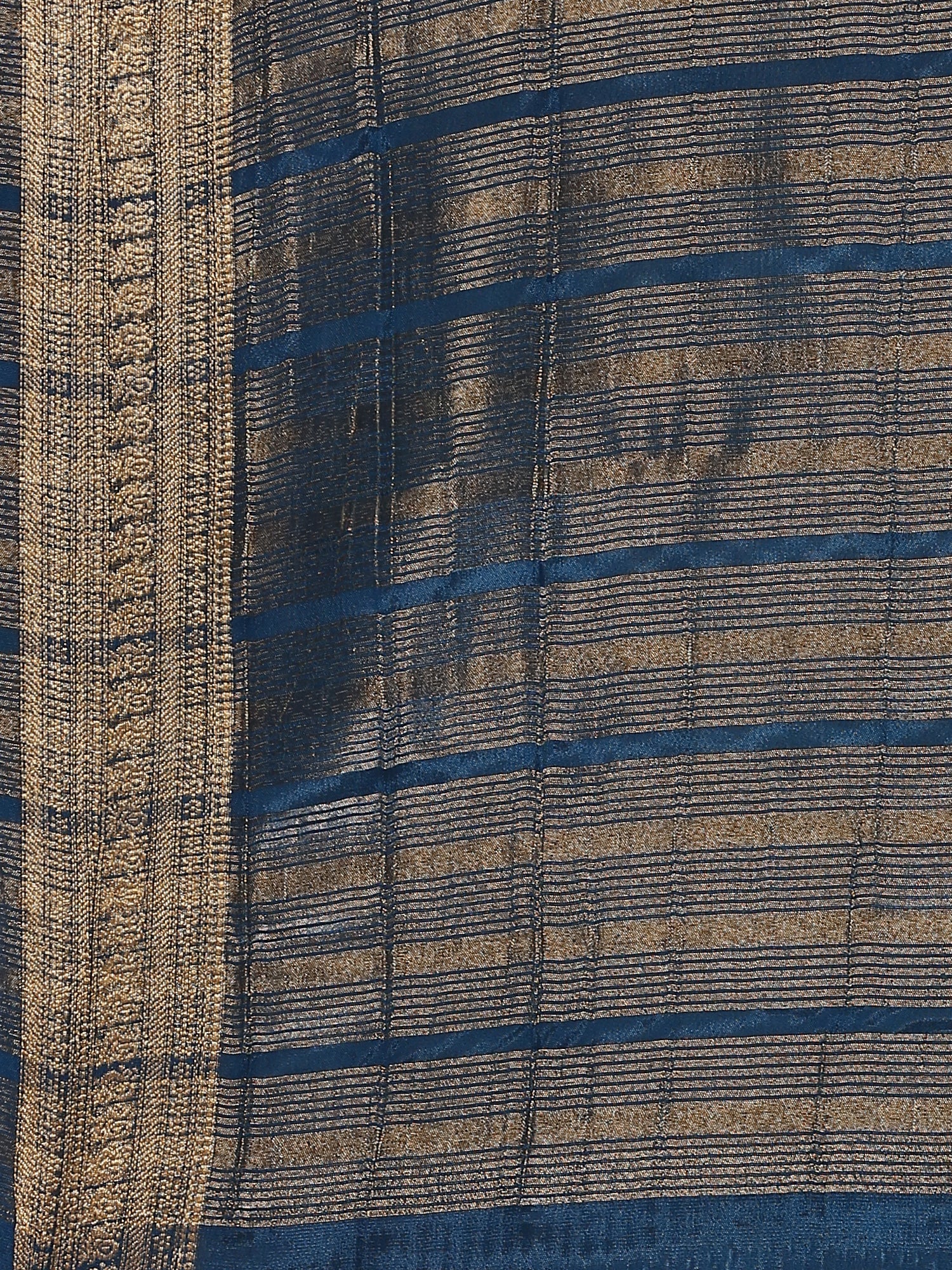 Navy Blue Mysore Crepe Saree With Zari Jaal Border