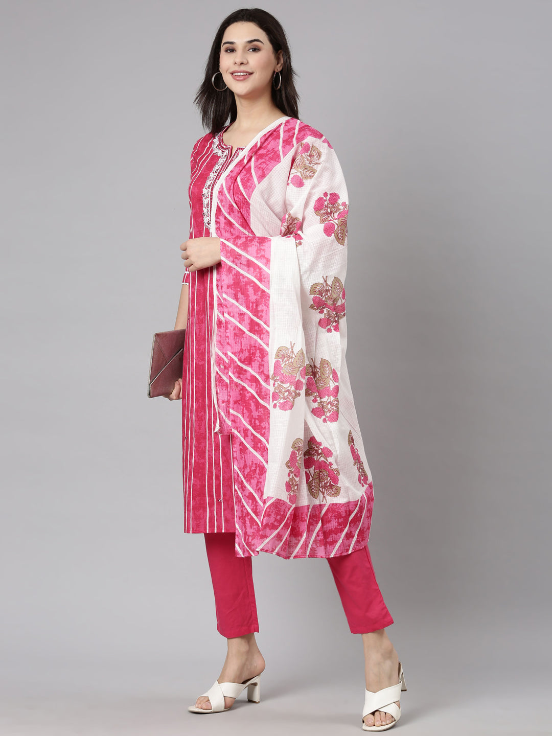Get the perfect look with Neerus Pink Kurta & Trousers, paired with a Dupatta!