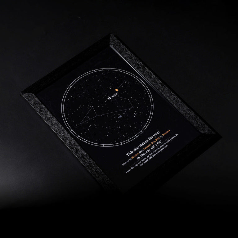 Make your loved one shine forever by naming a star after them—now with their picture beautifully framed! Simply share their name, select the zodiac and the date, and a star will be named exclusively for them.