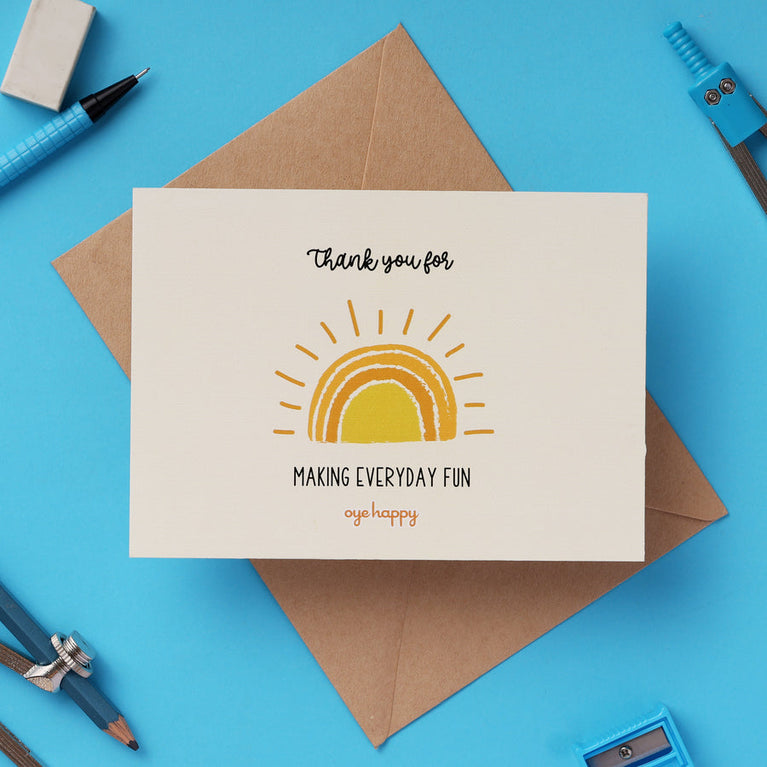 A teacher's day gift that is cute, colorful, and packed with kindness! This set of 5 adorable thank you cards is perfect for students or anyone looking to thank a teacher in the most adorable way. It's thoughtful, fun, and sure to make them feel extra special.Specifications: Size of each Card - 9.8 x 14 cmsNumber of Cards- 5 Cards