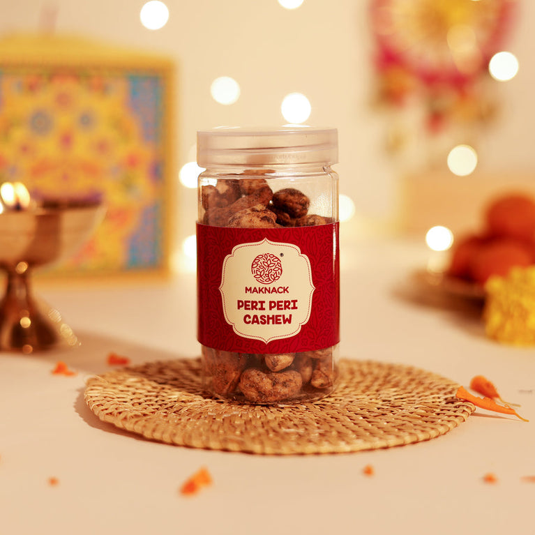 Introducing India’s First Patakha Box — a one-of-a-kind festive surprise that looks like a cracker but opens up as a magical hamper. It’s designed to give you the joy of lighting something special without any noise, or pollution.Celebrate Diwali with a thoughtfully curated hamper that includes:Peri Peri CashewsPepper Almond Crunchperi peri makhana Paan CandyDiwali Greeting cardHow It Works :The Patakha Box is simple and safe to use:Light the wick or pull it gently.Watch the box unfold in a magical way.Experience the joy of festive unboxing with none of the mess or worry.Specifications-Size of the box: 14 cm X 14 cm X 14 cm