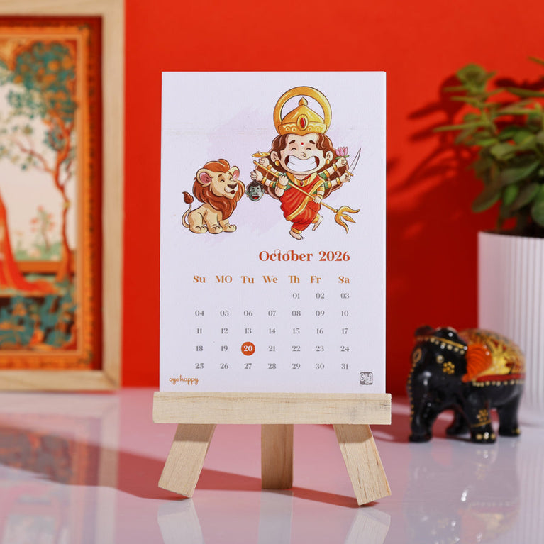Meet the calendar that turns your desk into a mini mandir. A calendar that brings a whole year of divine blessings, right on your desk! With cute illustrations of Ganpati Bappa, Shivji, Krishna and more - this one makes every month feel like a tiny darshan.If you love starting your day with a little bhakti and a whole lot of smiles, this calendar is your perfect companion. And if you know someone who could use an everyday dose of divine positivity, gift them this calendar and make their year extra blessed.Specifications -Size : 3.4 x 5 inches