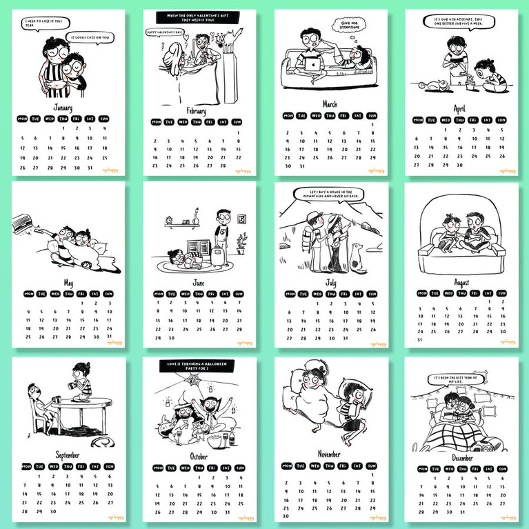 If you and your partner love celebrating the little things, this calendar fits right in. Each month shows a moment that looks exactly like something you two have done - or will do. Gift it to your partner to make them smile all year long. Or surprise the most adorable couple you know and make their new year special.Specifications-Size of the Easel : 4.5 x 3.5 inchesSize of Cards : Size : 3.4 x 5 inches