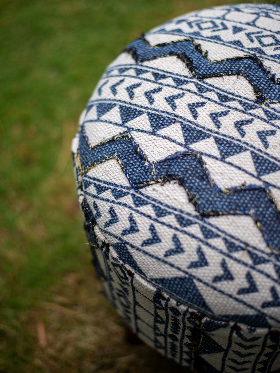 A beautiful combination of utility and design, our ottomans will find a fit in any space. Break the monotony of pastels and wood with a pop of color, and while at it, don't forget to marvel at the finesse and handcraft of each piece. Featuring solid wood legs and handloom rug upholstery.