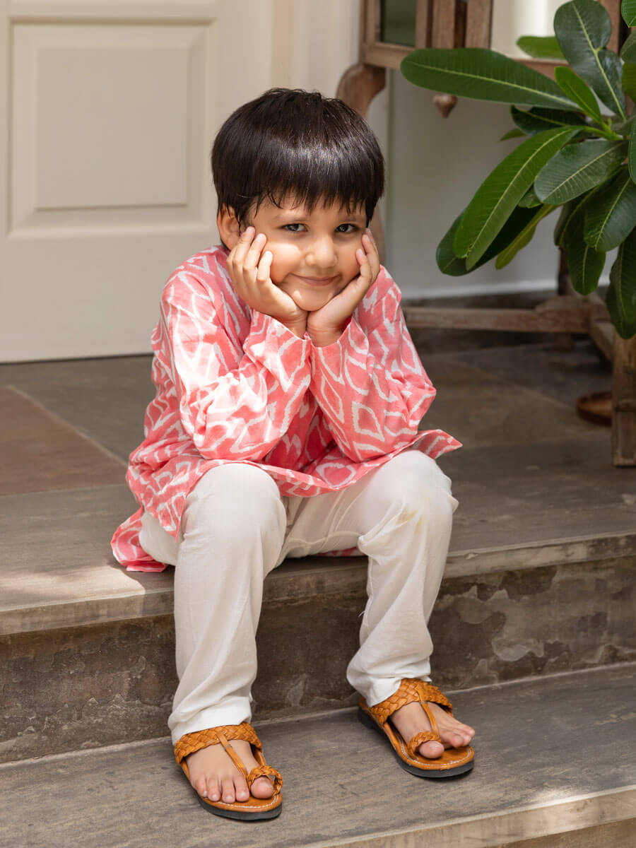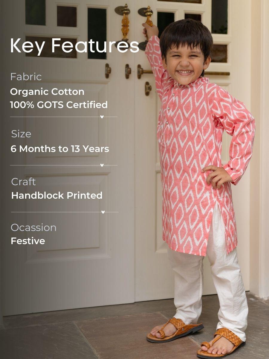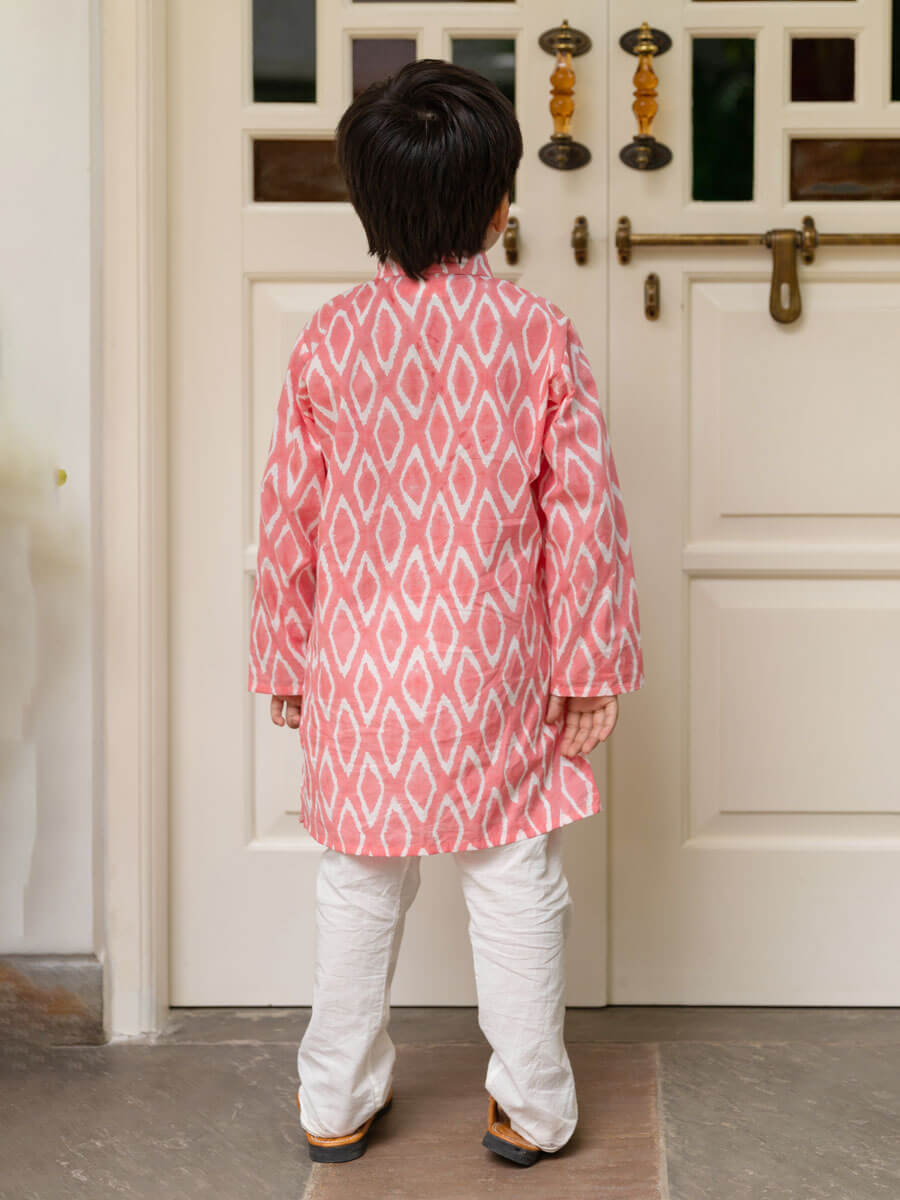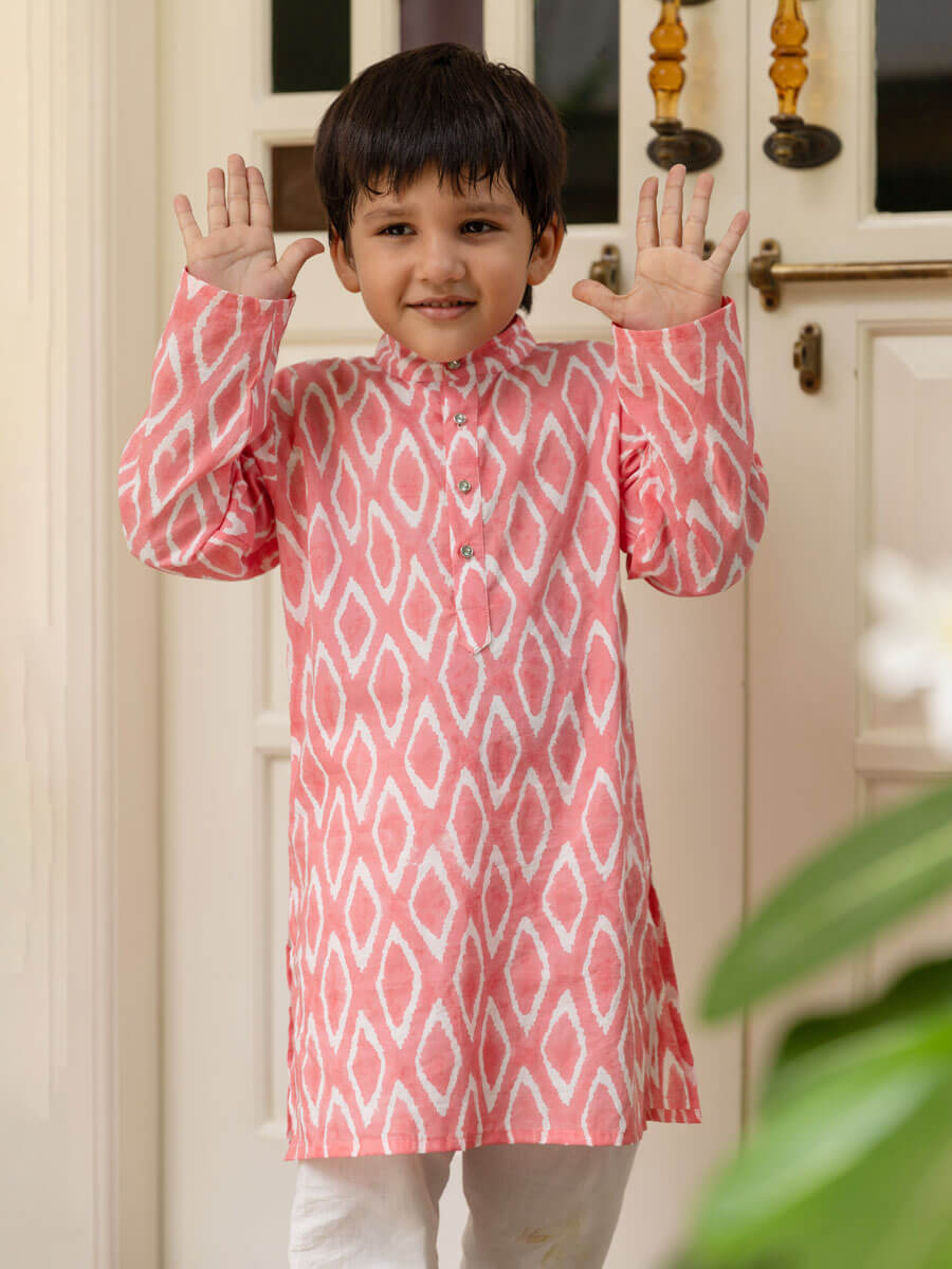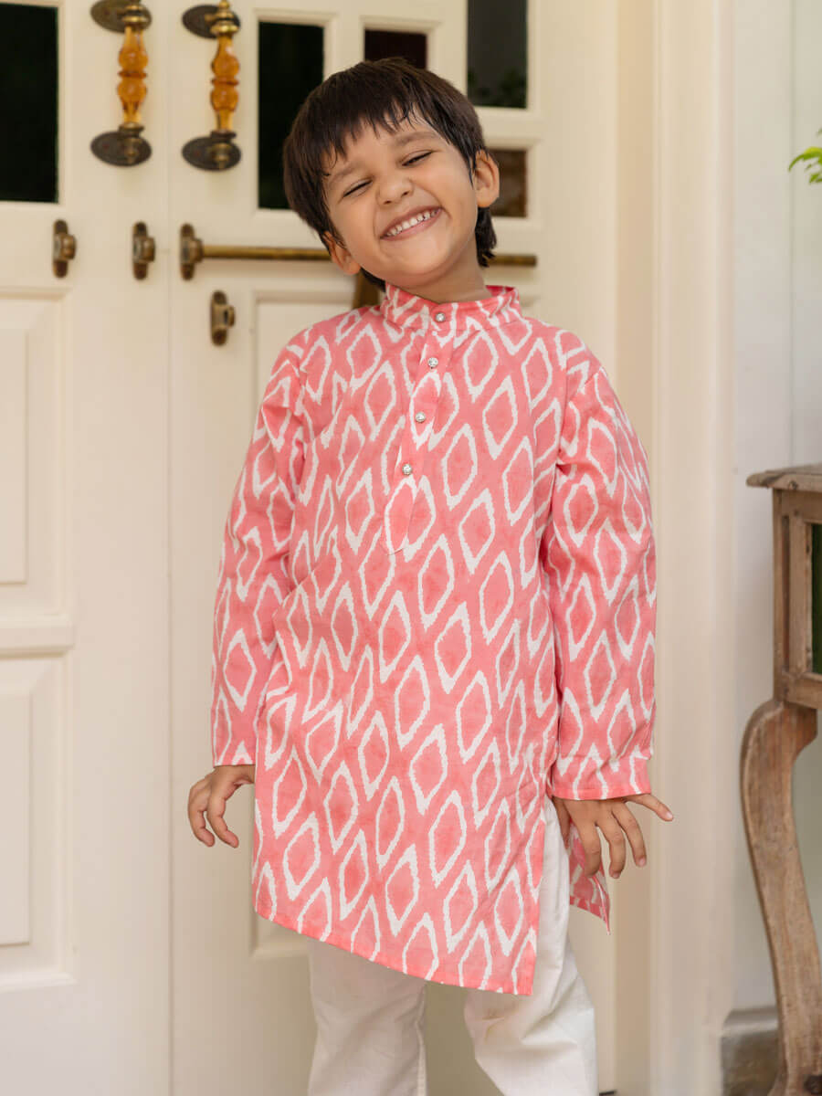 Pink Ikat Organic Cotton Block Printed Long Kurta