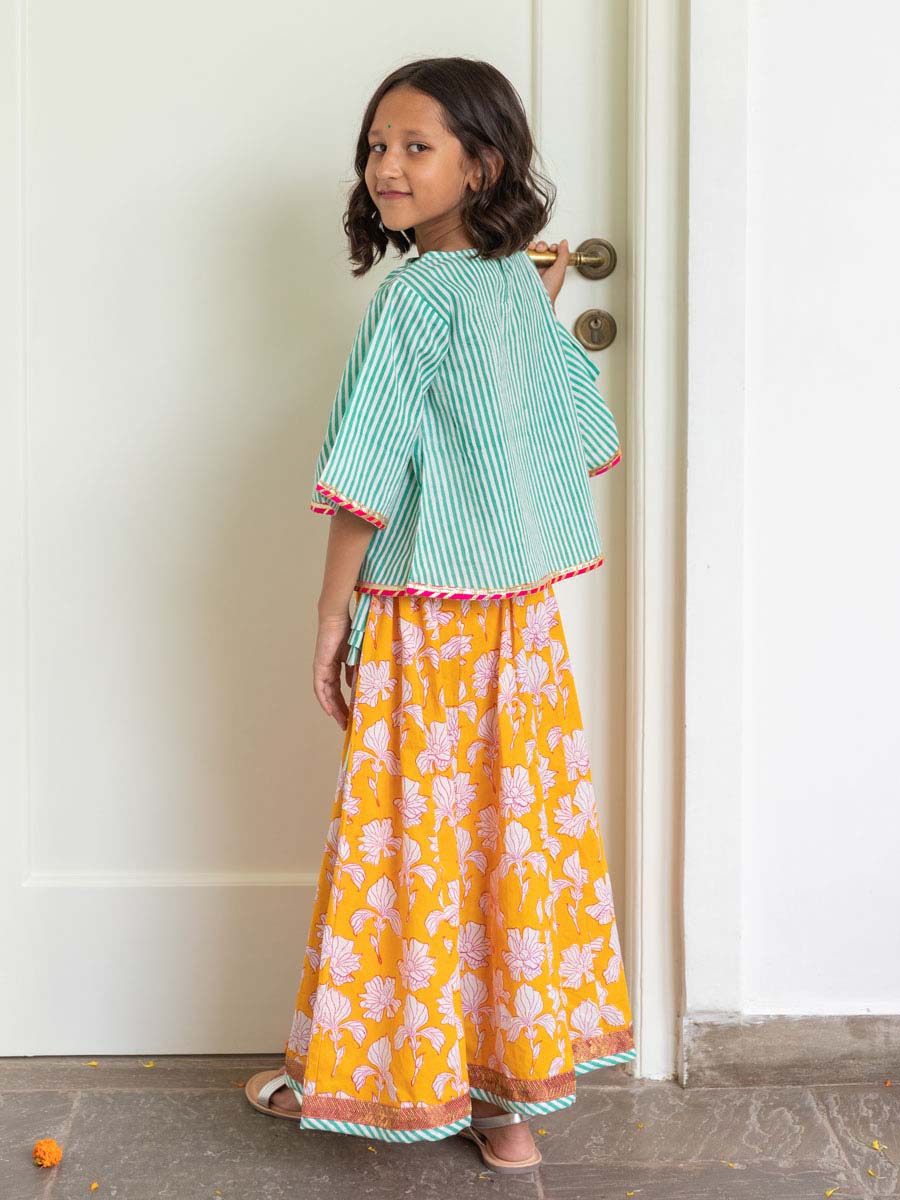 Set of 3 - Kashish Block Printed Cotton Lehanga