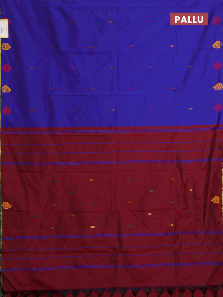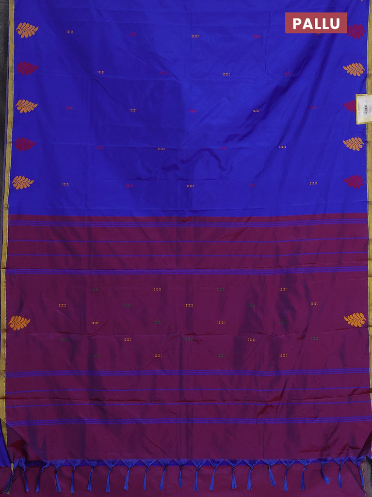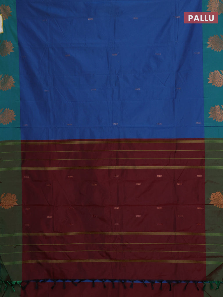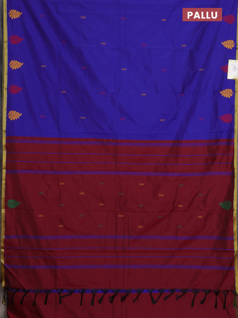 Arani semi silk saree blue and maroon with thread woven buttas and thread woven butta border