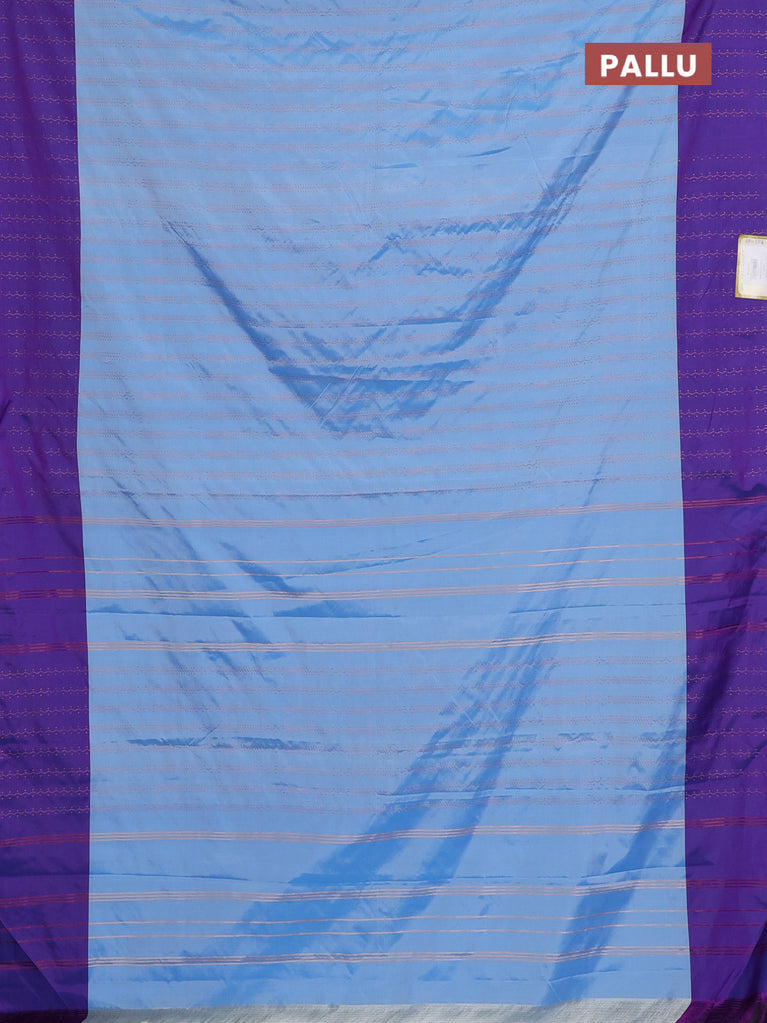 Arani semi silk saree blue and dual shade of violet with allover copper zari weaves and zari woven border