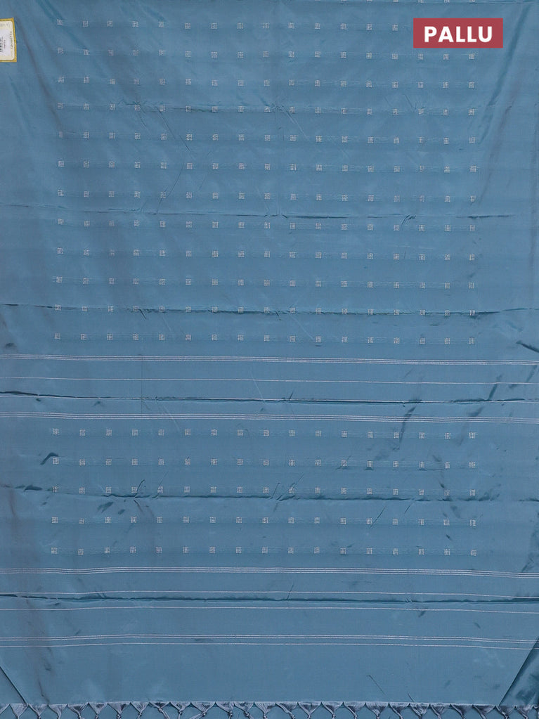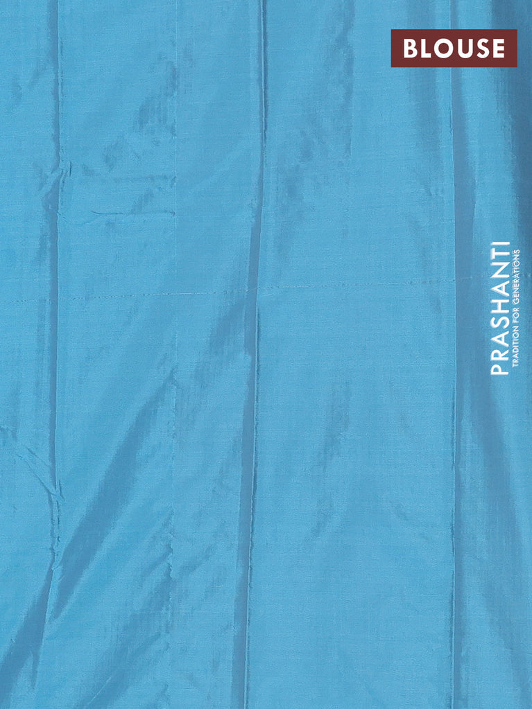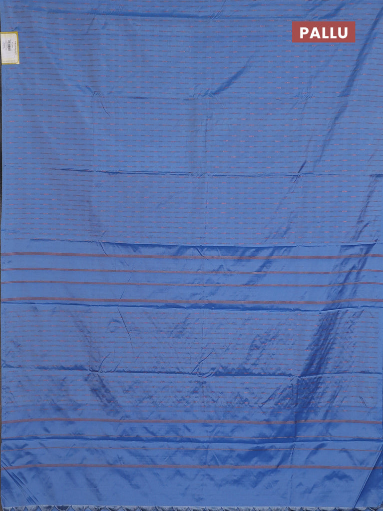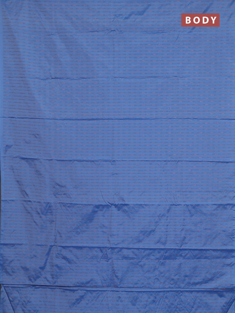 Arani semi silk saree blue shade with silver zari woven buttas in borderless style