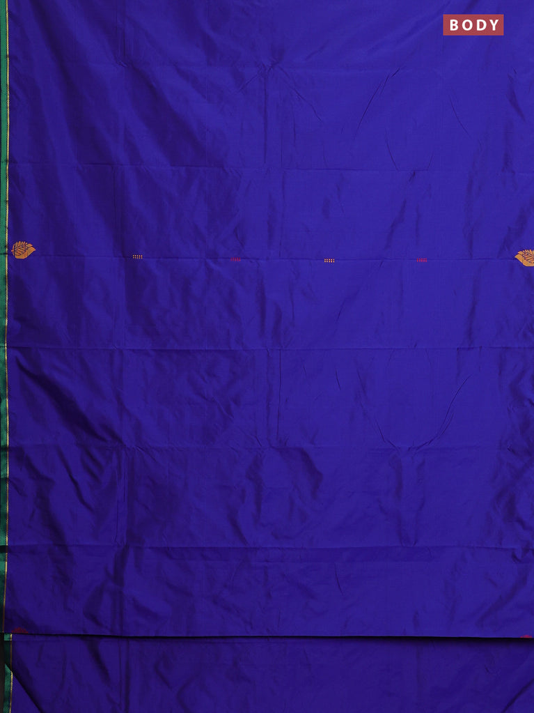 Arani semi silk saree blue shade and green with zari woven buttas and paisley zari woven butta border