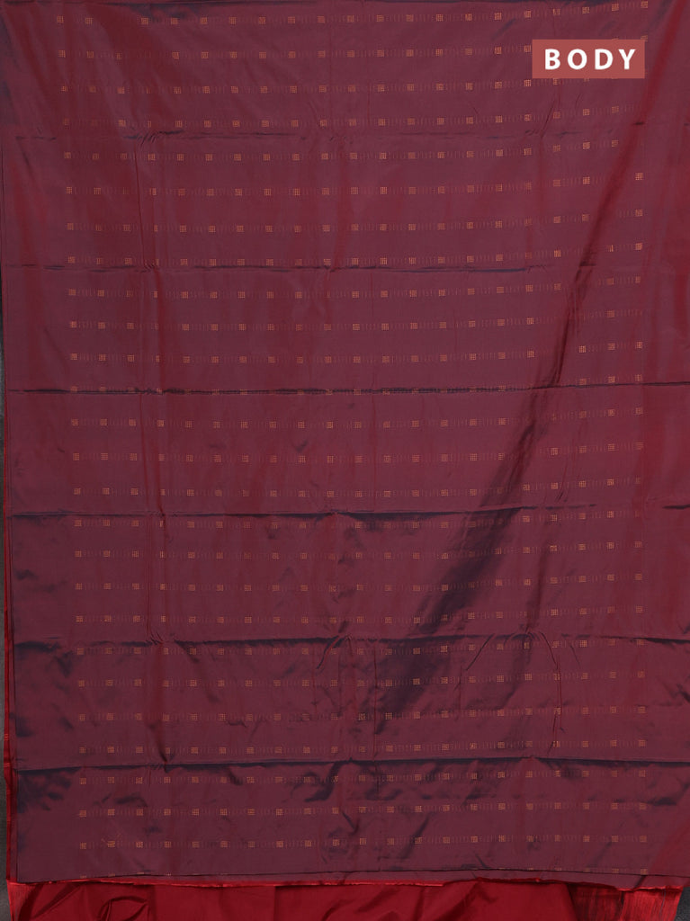 Arani semi silk saree maroon with zari woven buttas in borderless style
