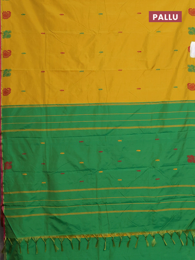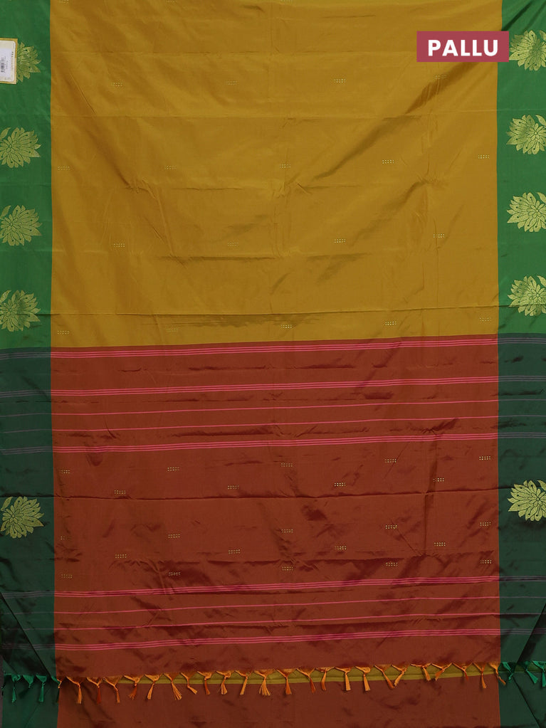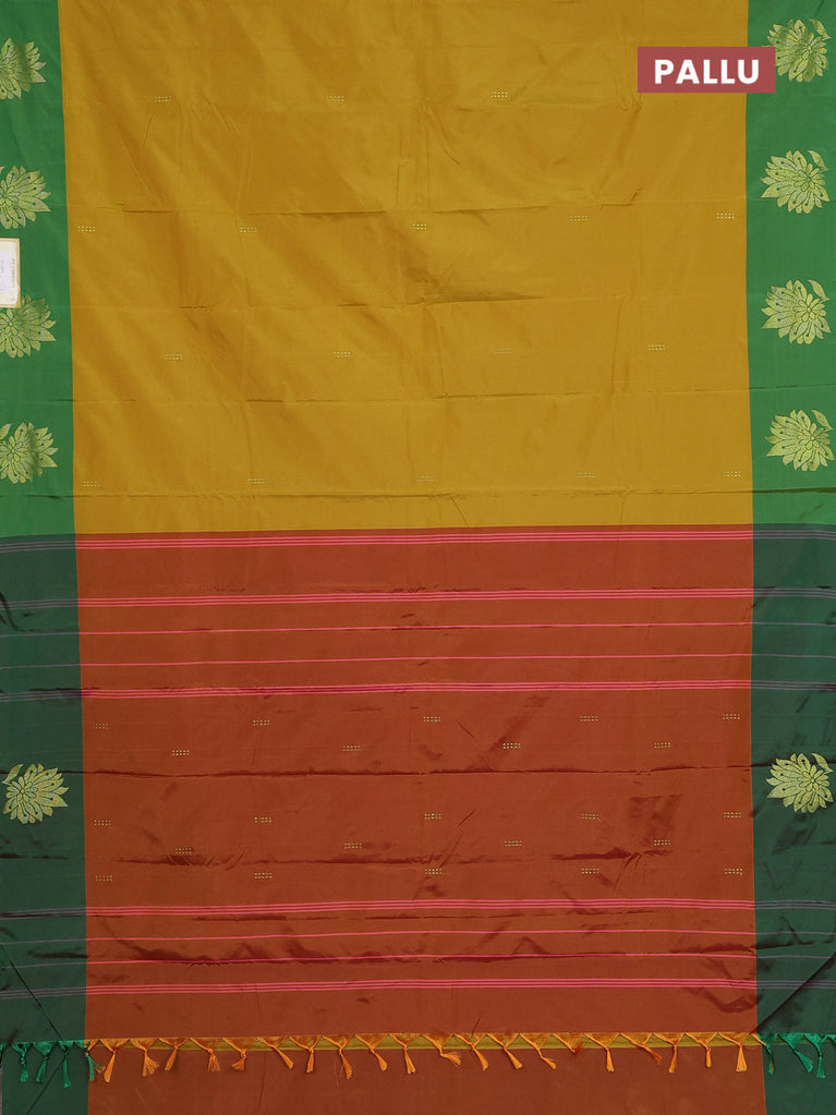Arani semi silk saree mustard yellow and green with zari woven buttas and zari woven butta border