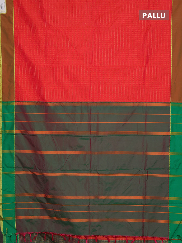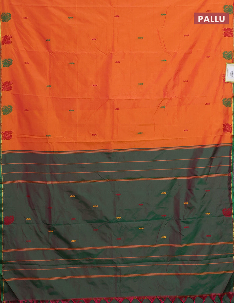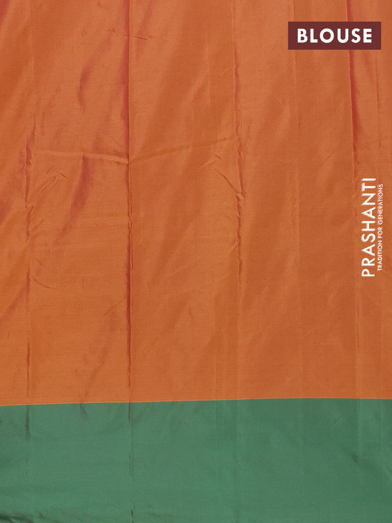 Arani semi silk saree orange and dual shade of green with allover thread weaves and rettapet zari woven border`