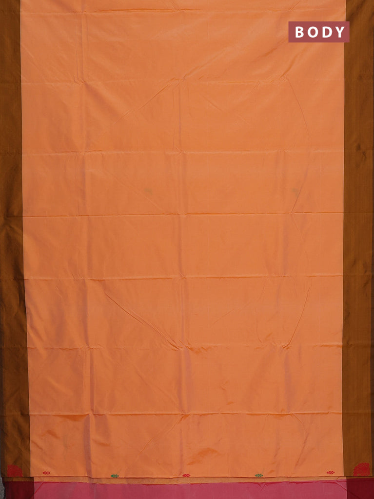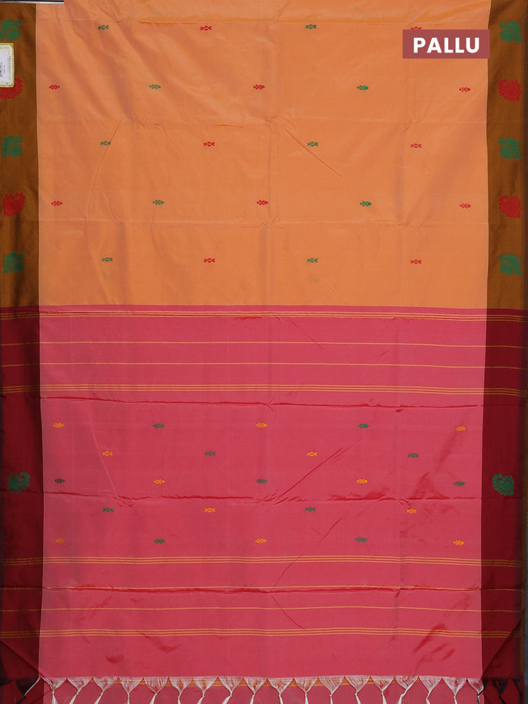 Arani semi silk saree pale orange and dark mustard with thread woven buttas and thread woven butta border