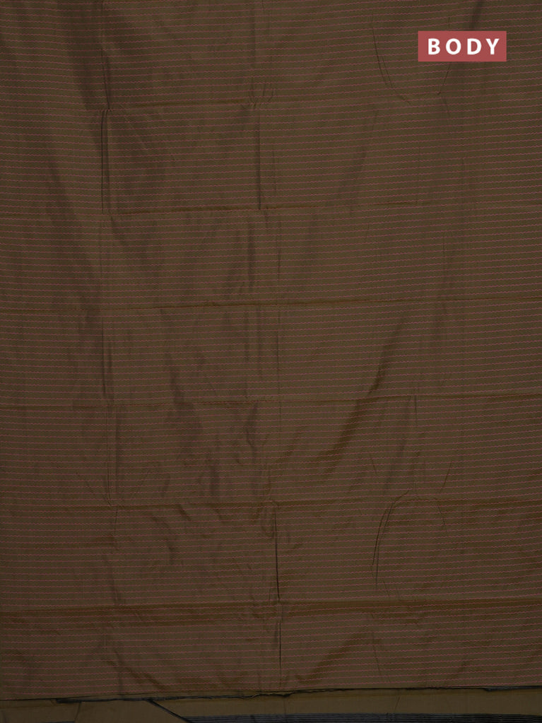 Arani semi silk saree military green with allover thread weaves in borderless style