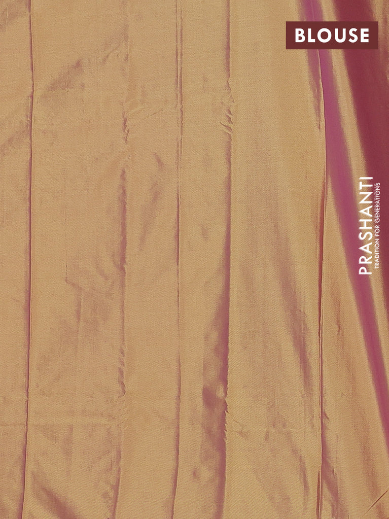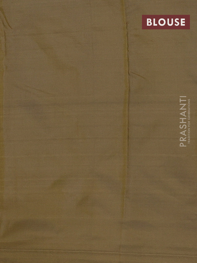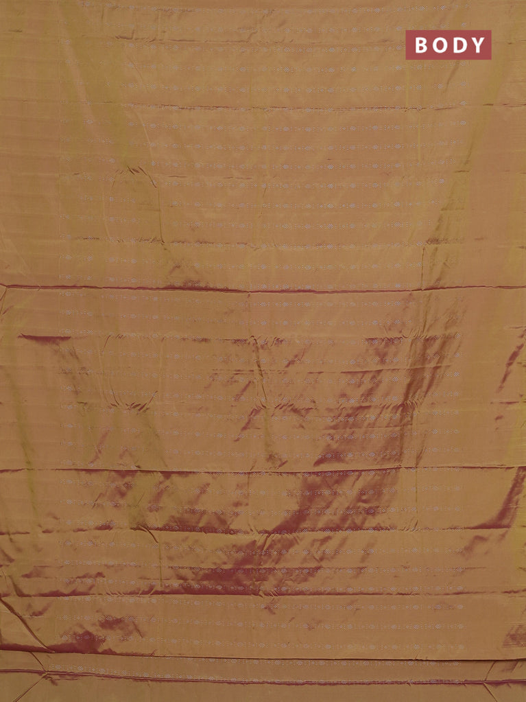 Arani semi silk saree mehendi green and dual shade of yellowish pink with thread woven buttas and thread woven butta border