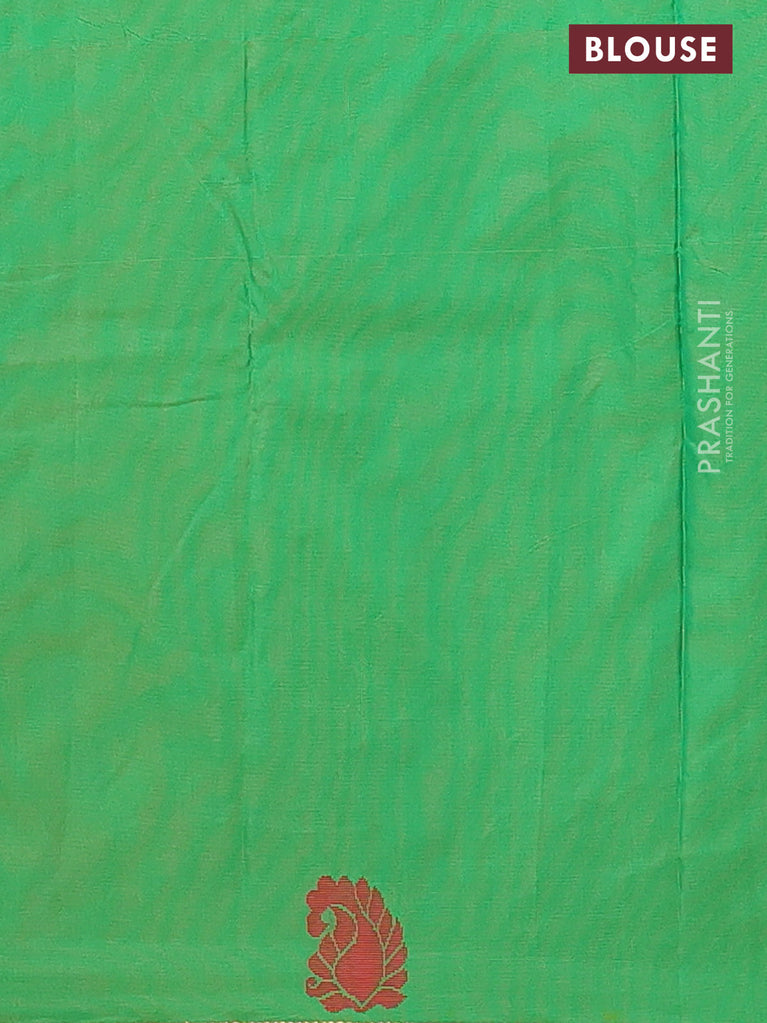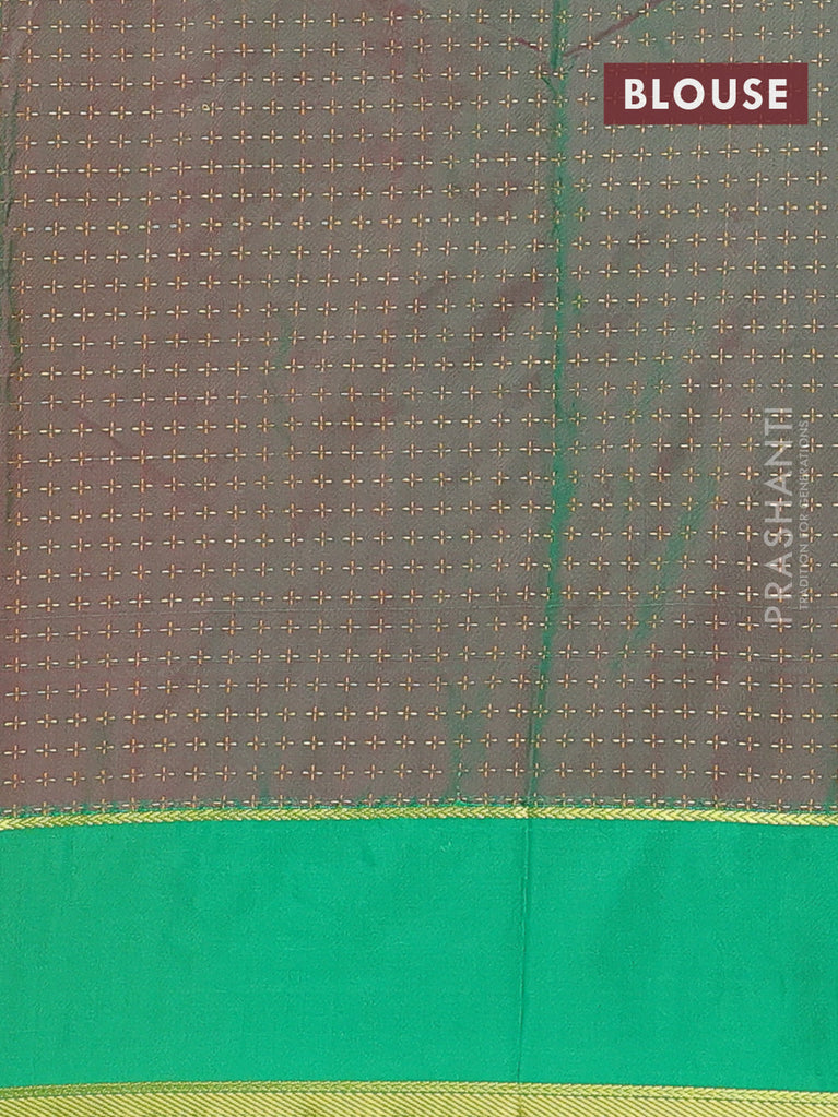 Arani semi silk saree mehendi green with allover silver zari weaves in borderless style