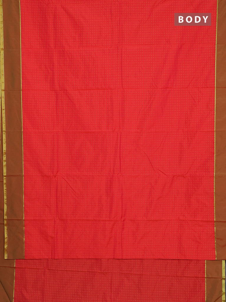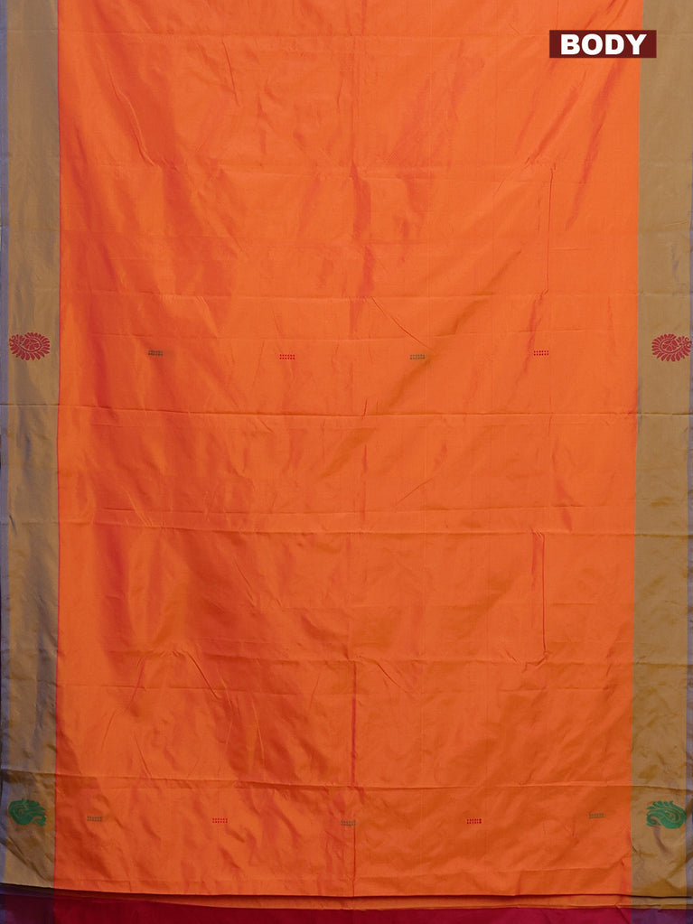 Arani semi silk saree orange and dual shade of maroon with thread woven buttas and thread woven butta border