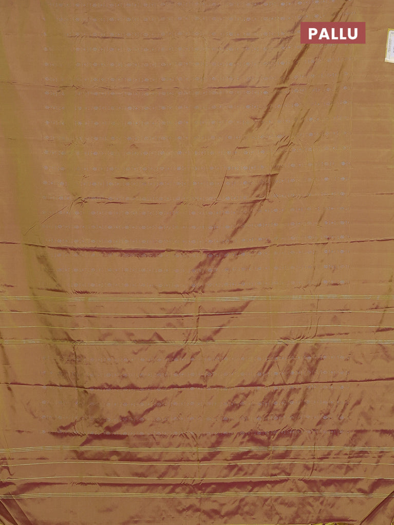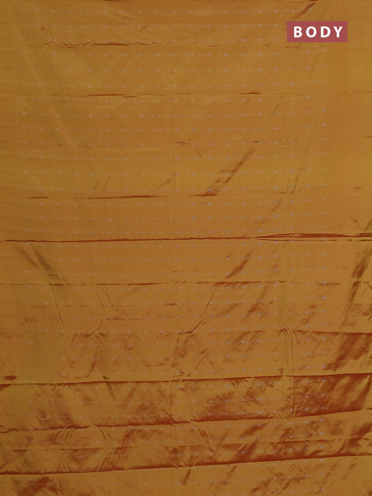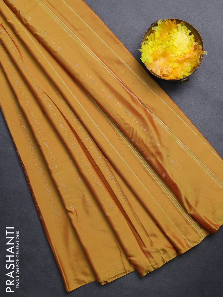 Arani semi silk saree mustard yellow with allover copper zari weaves in borderless style