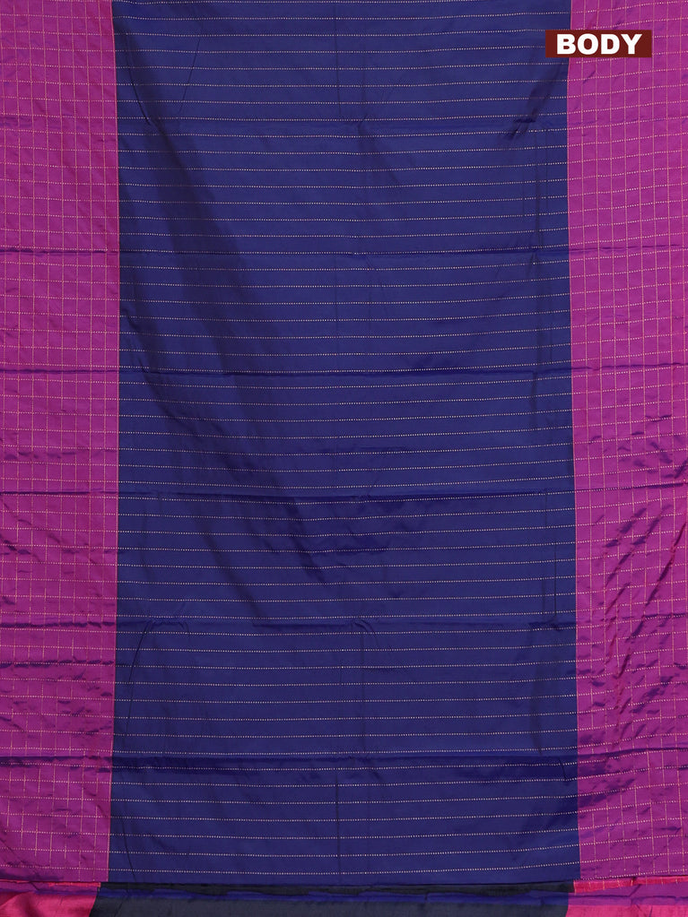 Arani semi silk saree navy blue and purple with allover copper zari weaves and zari checked border