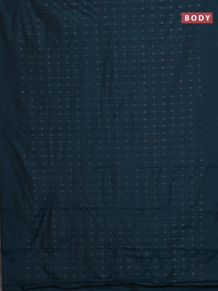 Arani semi silk saree peacock green with zari woven buttas in borderless style