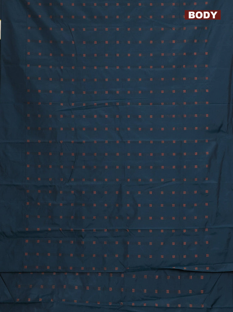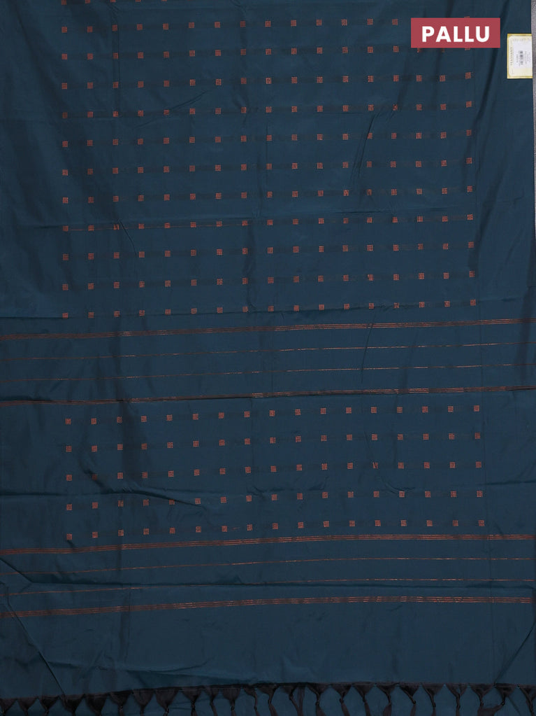 Arani semi silk saree peacock green with copper zari woven buttas in borderless style
