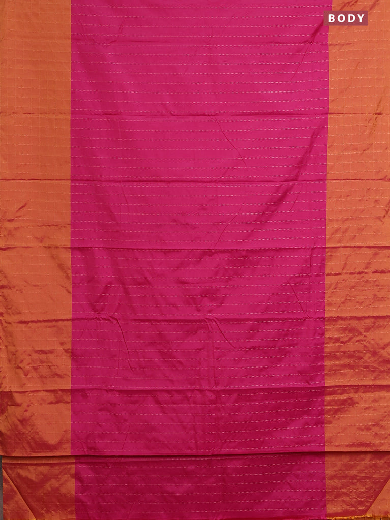 Arani semi silk saree peacock green and magenat pink with allover copper zari checked pattern and copper zari woven simple border