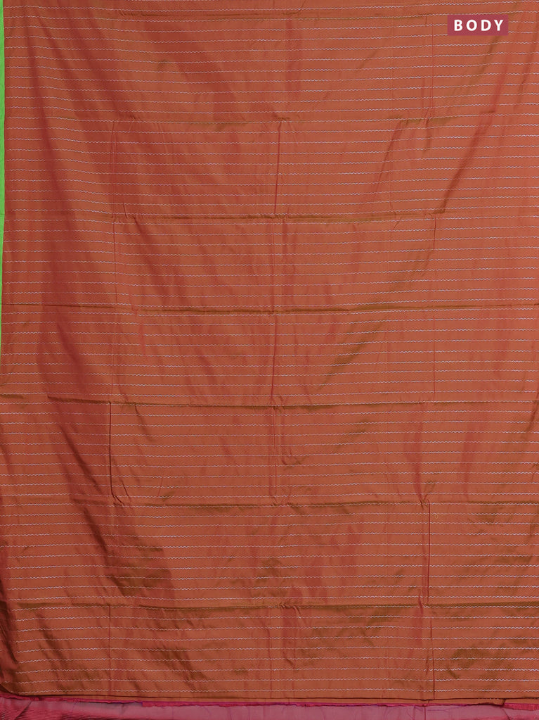 Arani semi silk saree sap green with copper zari woven buttas in borderless style