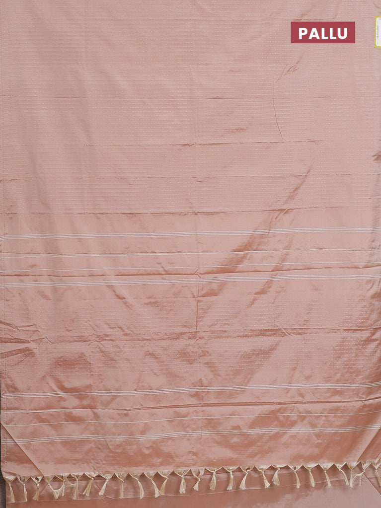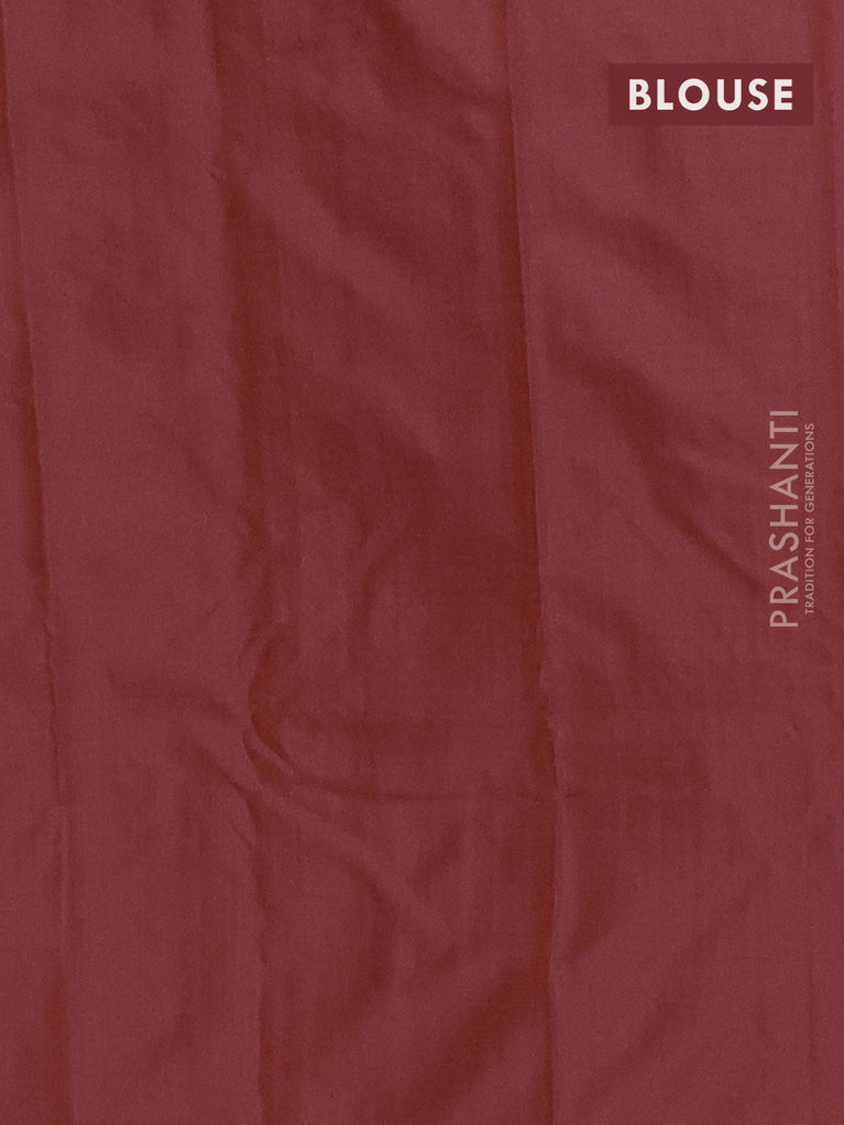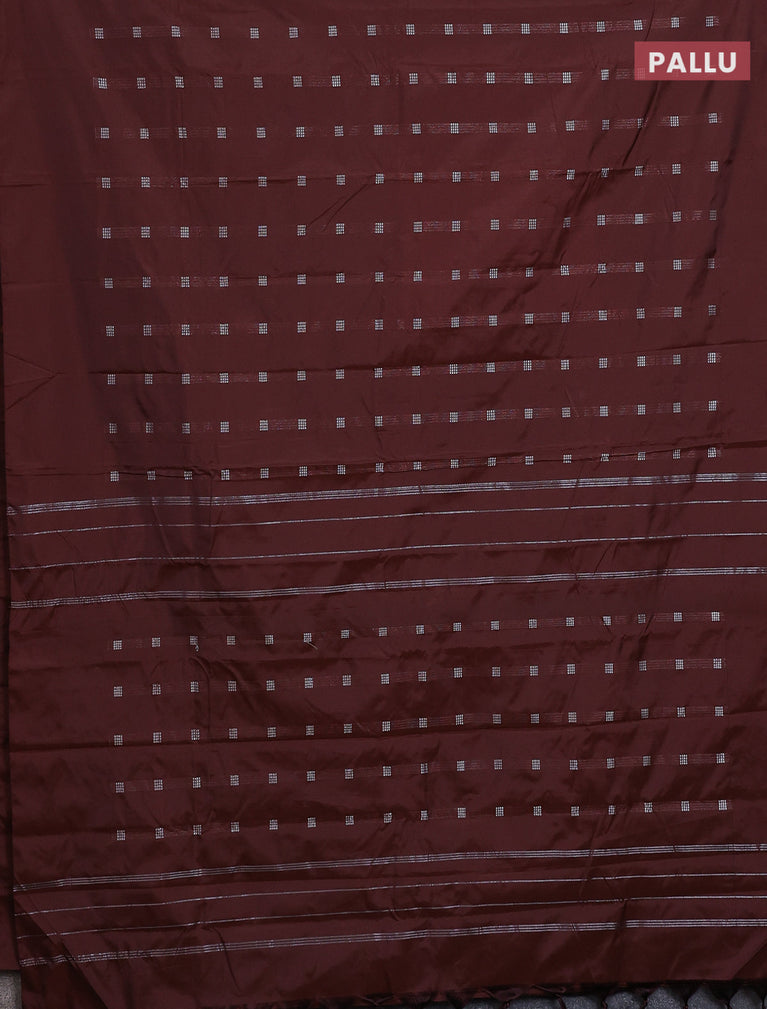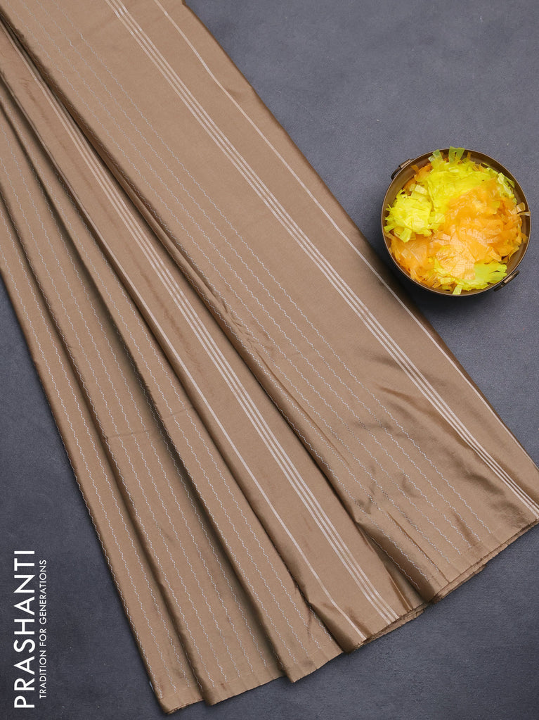 Arani semi silk saree rustic brown with silver zari woven buttas in borderless style