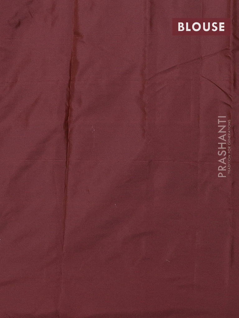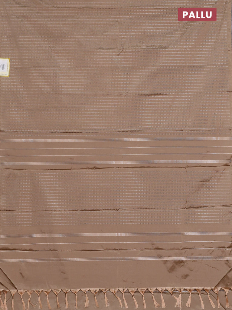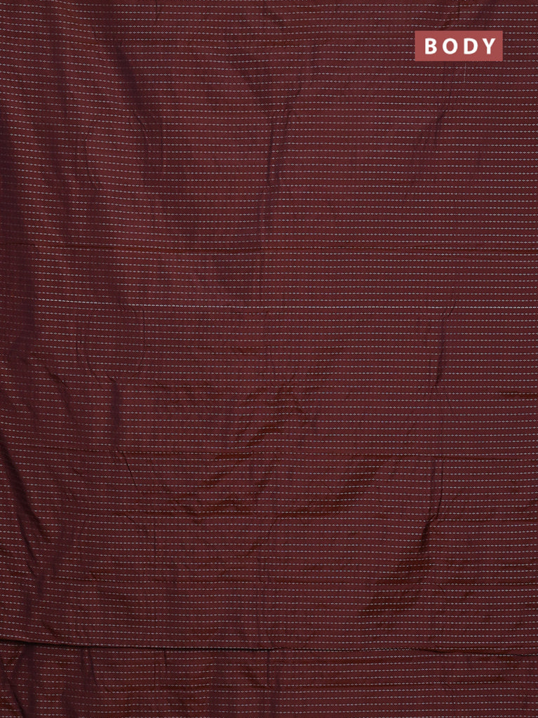 Arani semi silk saree rustic brown with allover silver zari weaves in borderless style