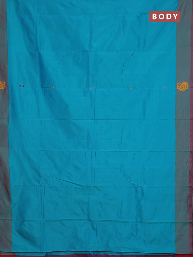 Arani semi silk saree teal blue shade with allover zari weaves in borderless style