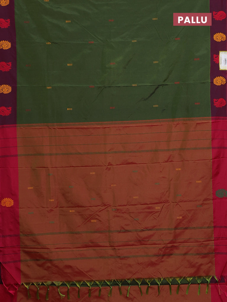 Arani semi silk saree sap green and dual shade of maroon with thread woven buttas and thread woven butta border