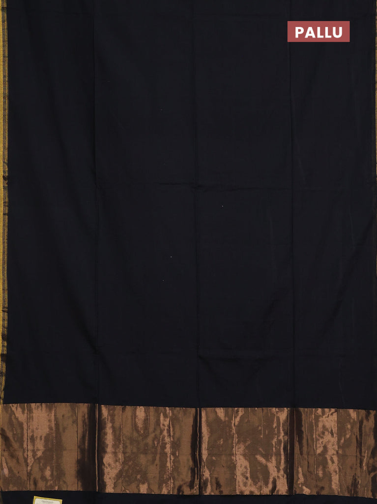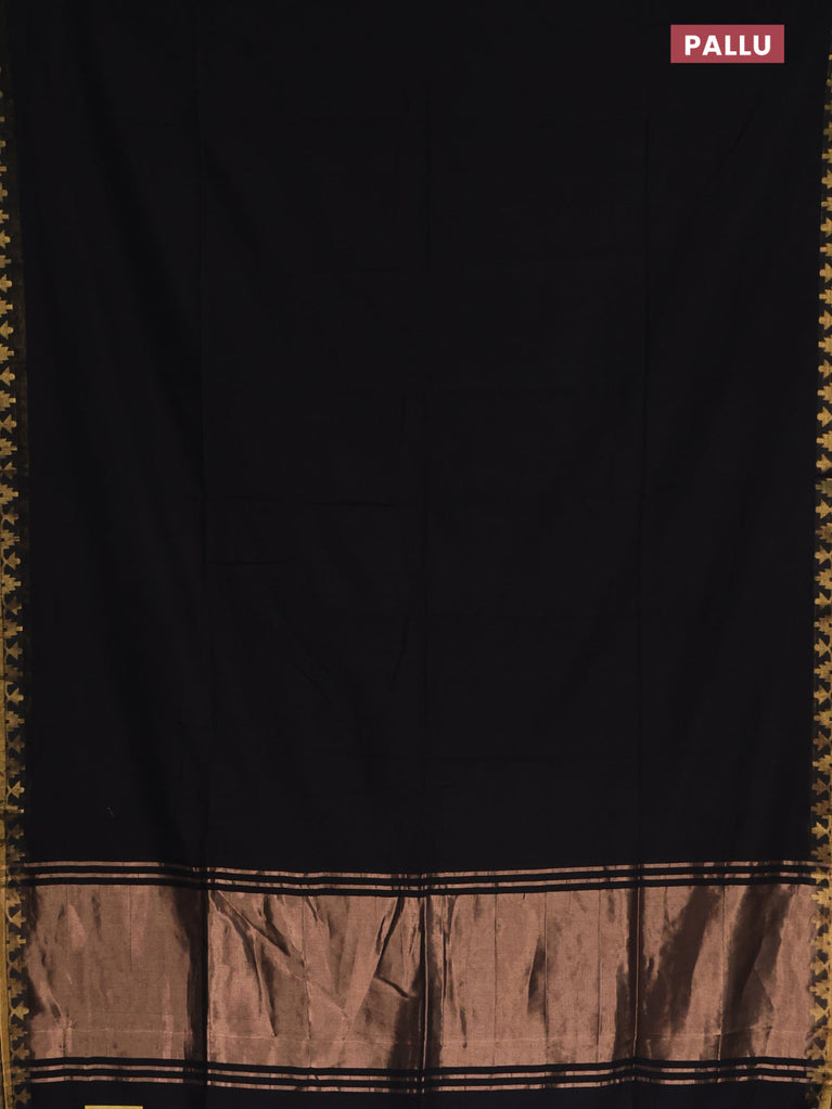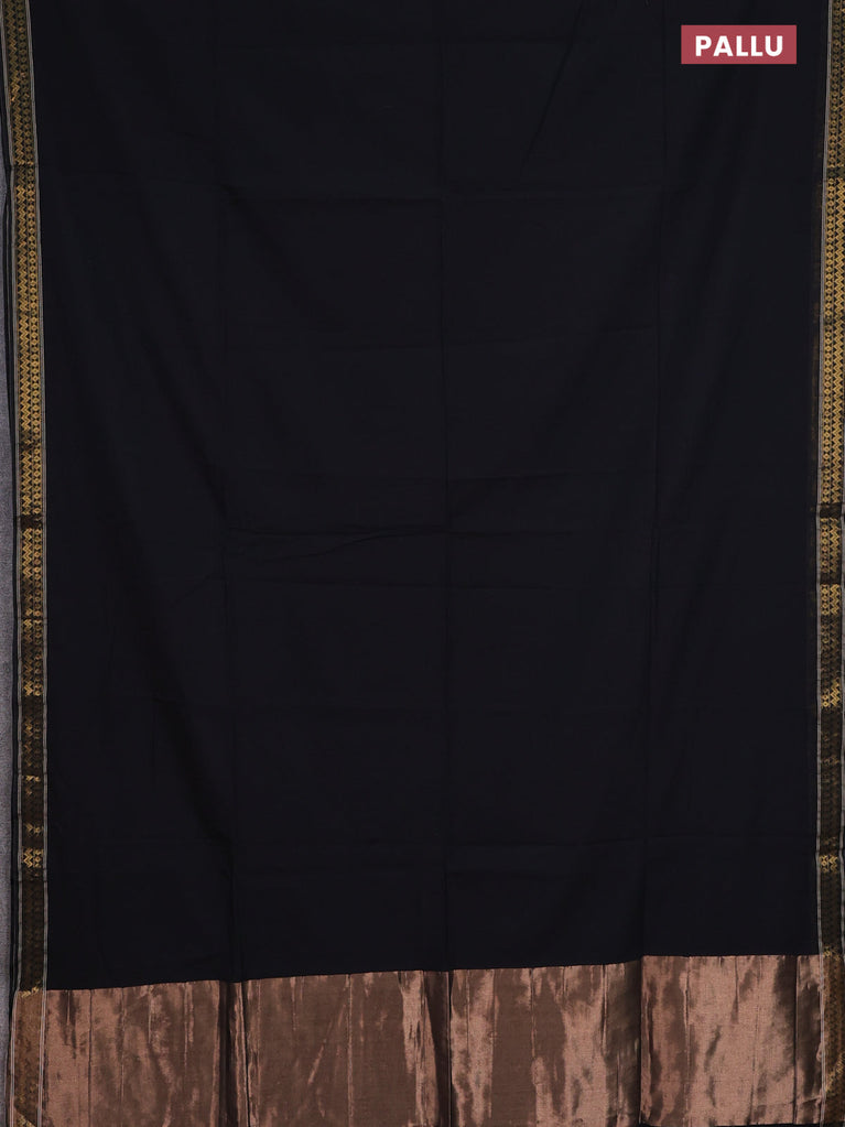 Bengal soft cotton saree black and blue with plain body and zari woven border