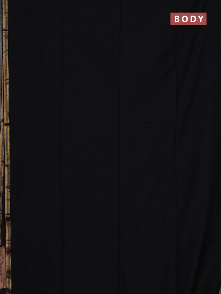 Bengal soft cotton saree black and green with plain body and zari woven border