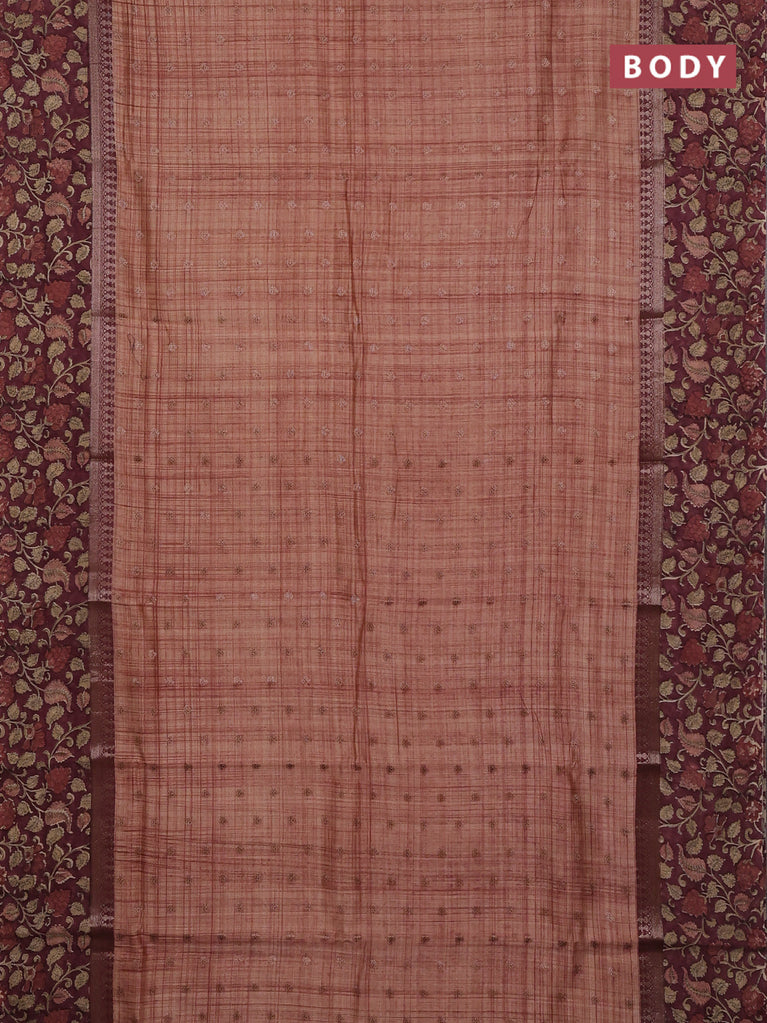 Chanderi silk cotton saree wine shade and pink with allover kalamkari prints and banarsi style border
