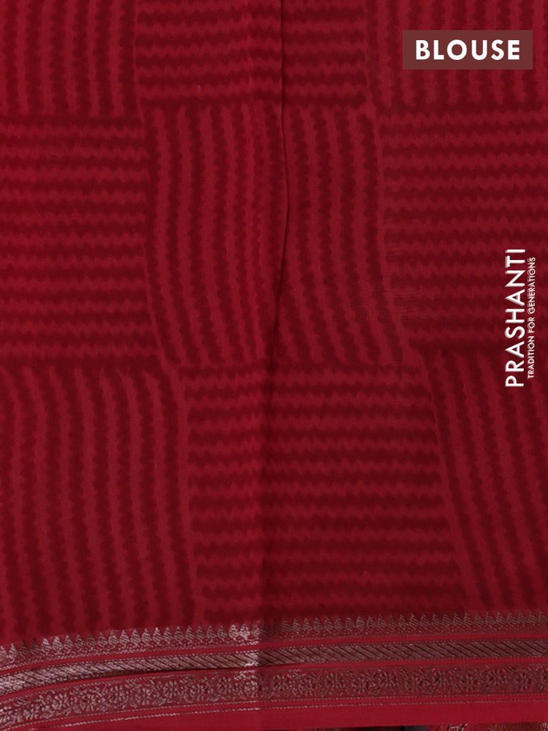 Chanderi silk cotton saree sandal jamun shade and red with allover geometric prints and banarasi style border